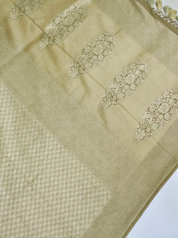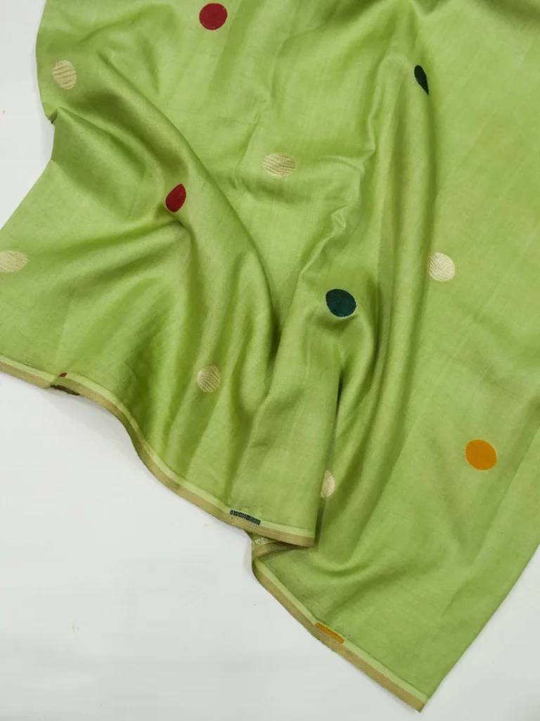 MASHRU SATIN SILK SAREE- pistachio Green Pure Banarasi Mashru Satin Silk Saree