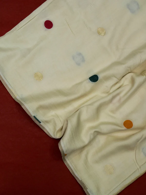 IVORY’ PURE MASHRU SATIN SILK MULTI ASHARFI BUTTI BANARASI SAREE