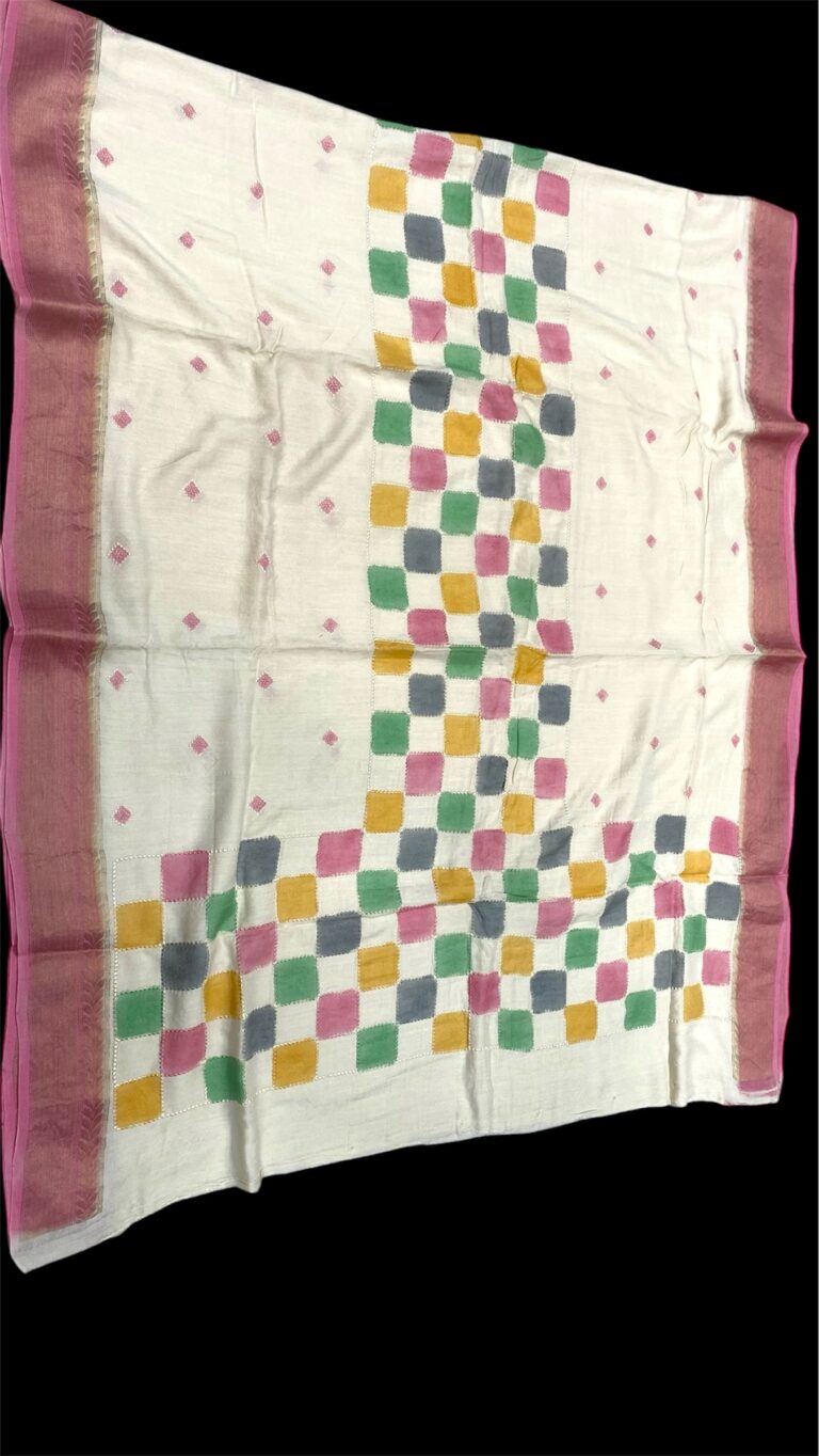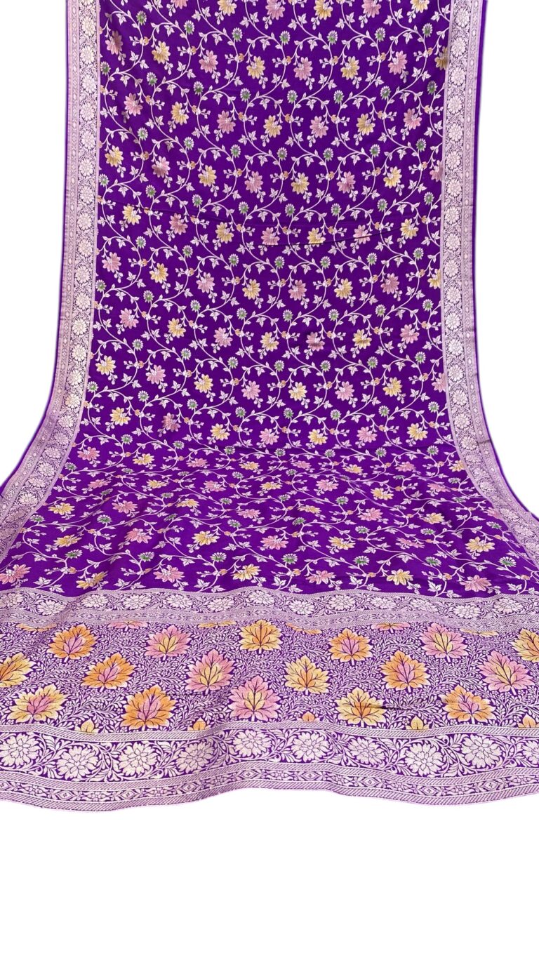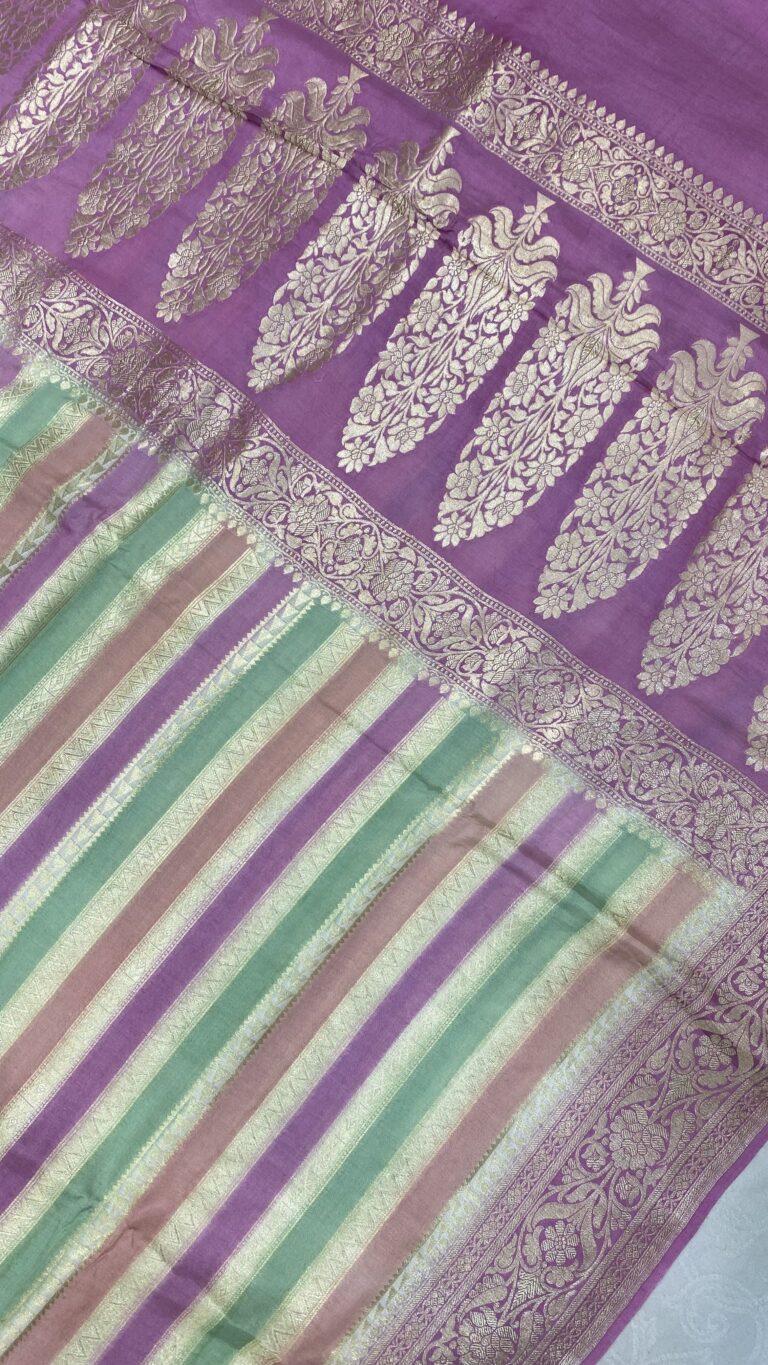 Pure moonga silk handloom banarasi chikankaari rangkaat handpainted saree