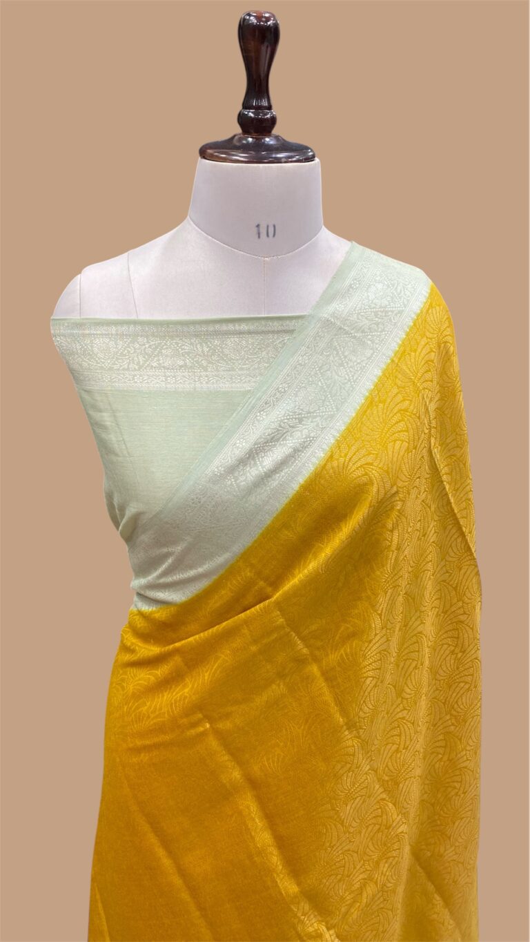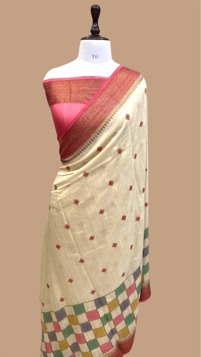 Pure moonga silk handloom banarasi handpainted rangkaat saree with chikankari