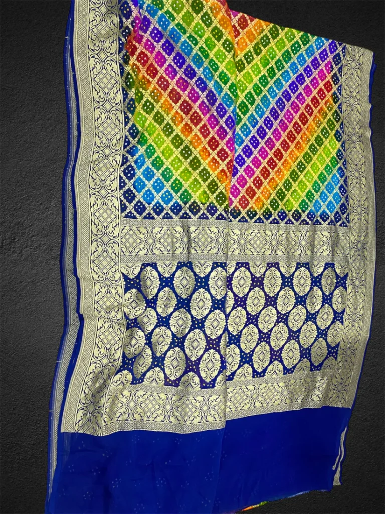 ‘BANDHANI’ PURE KHADDI GEORGETTE HANDLOOM BANDHANI BANARASI SAREE