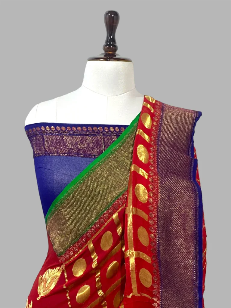 ‘SATRANGI’ PURE KHADDI GEORGETTE HANDLOOM BANARASI BANDHANI SAREE