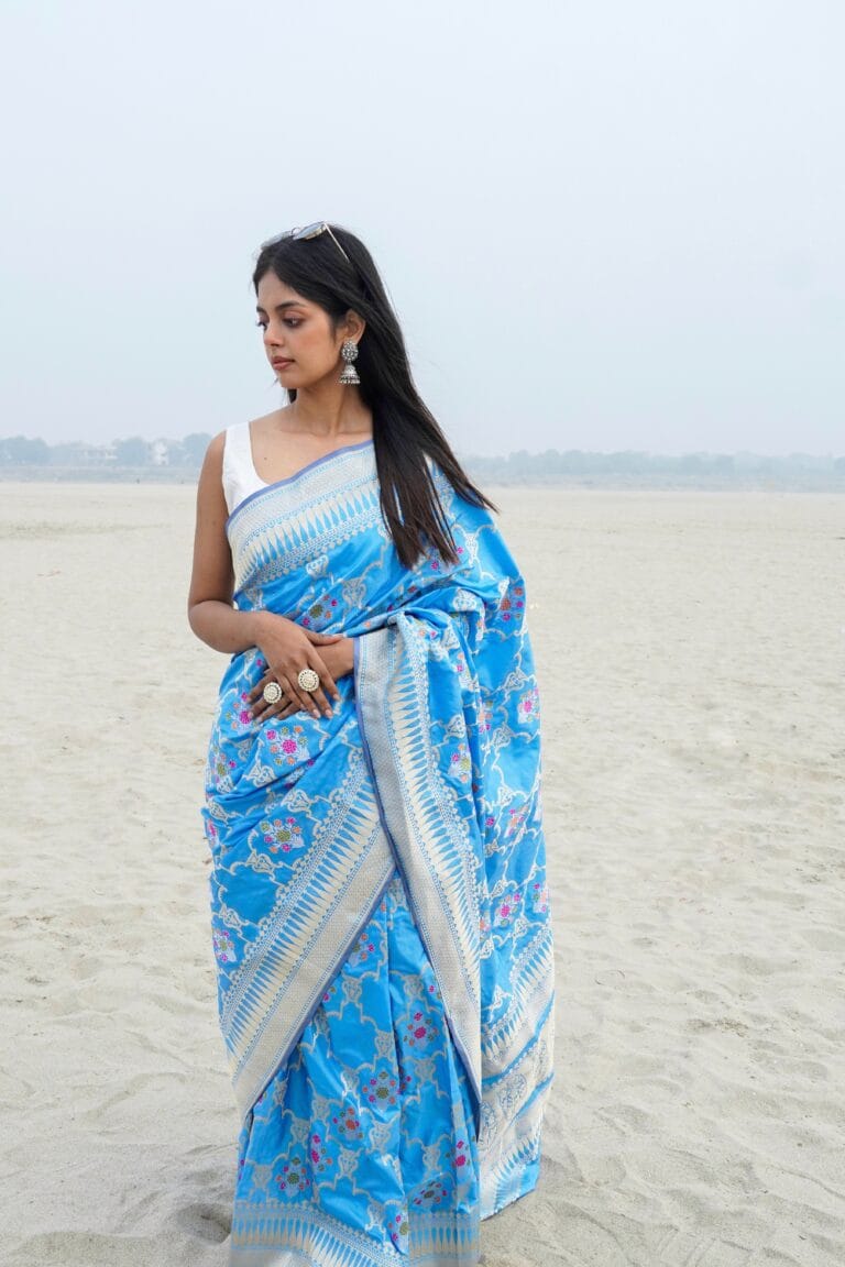 ‘NEOM BLUE’ PURE KATAAN SILK HANDWOVEN BANARASI JANGLA SAREE