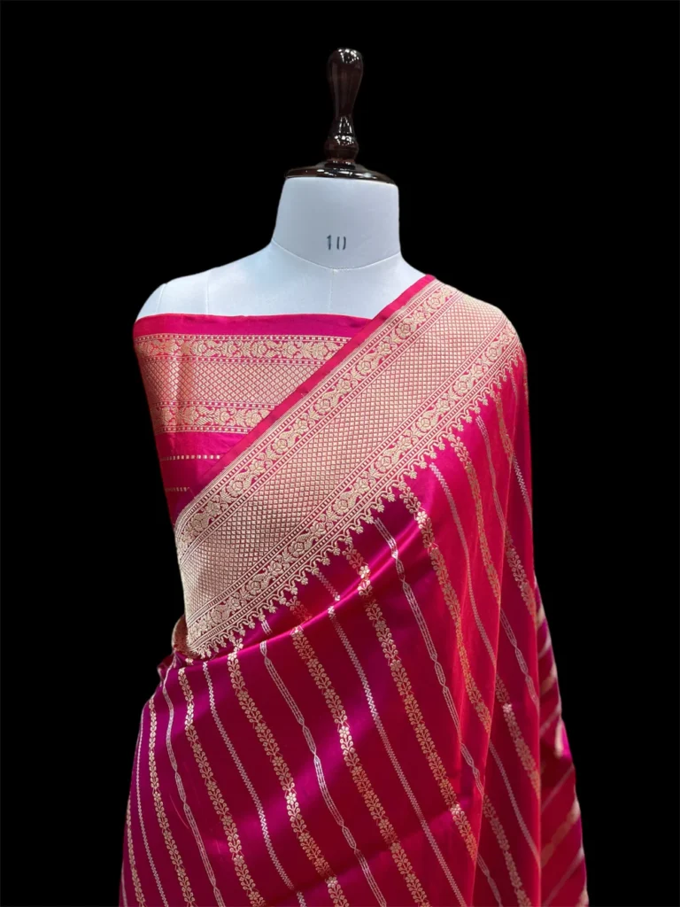 ‘RANI PINK’ PURE KATAAN SILK BANARASI SONA ROOPA JAAL SAREE