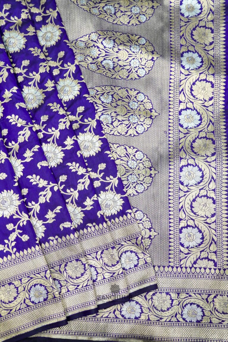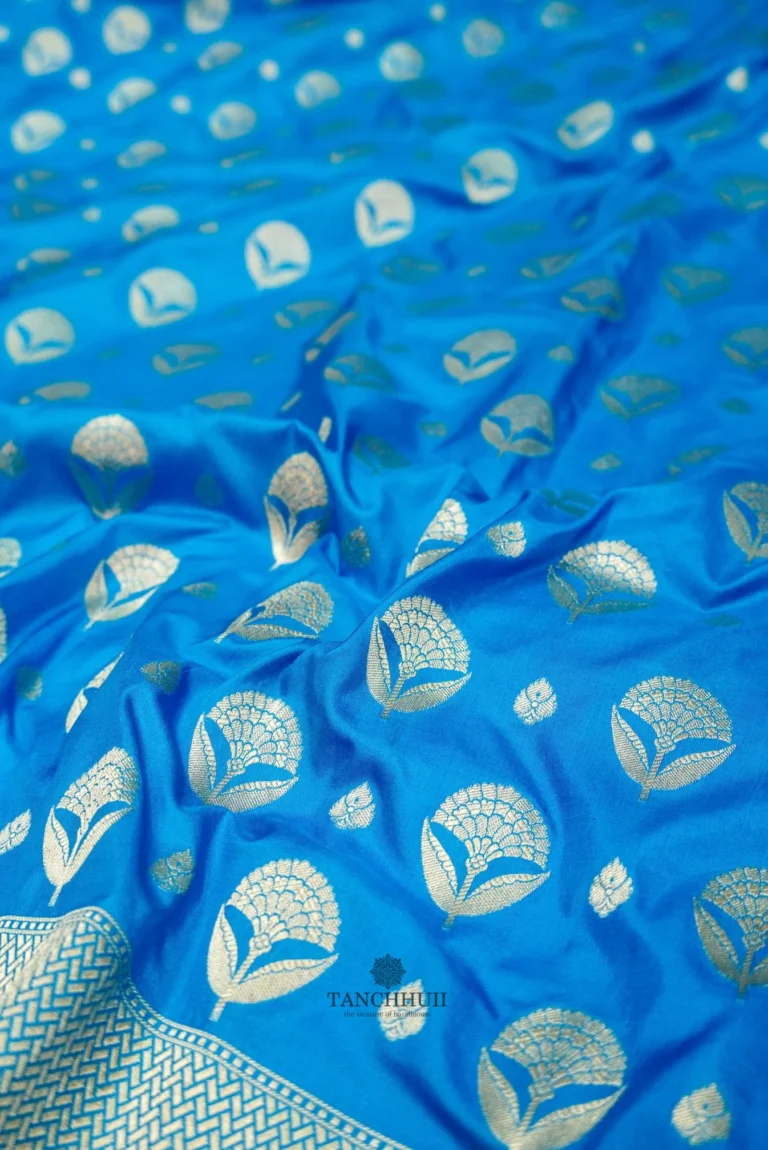 ‘NEOM BLUE’ PURE KATAAN SILK HANDWOVEN BANARASI JANGLA SAREE
