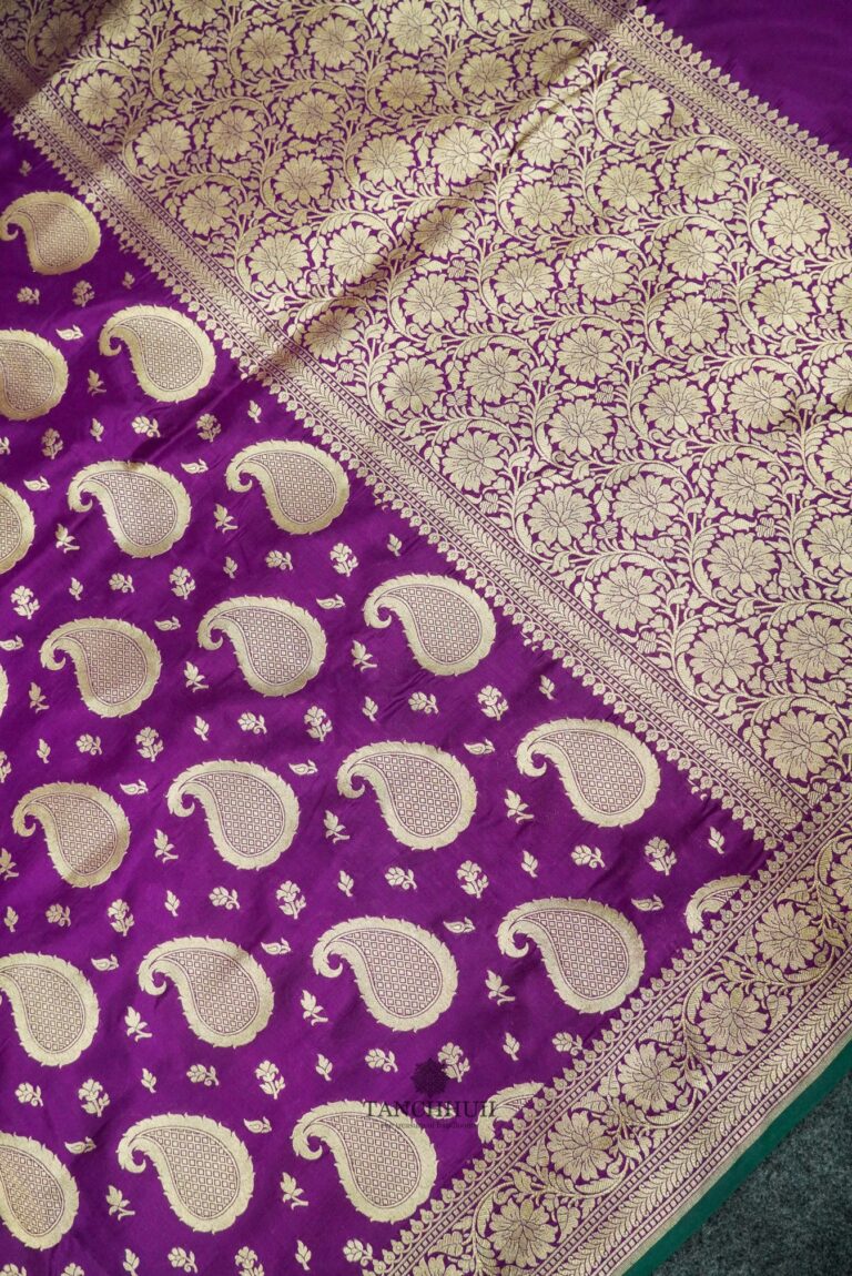 Pure Banarasi kataan silk saree-All over Sona Roopa jaal