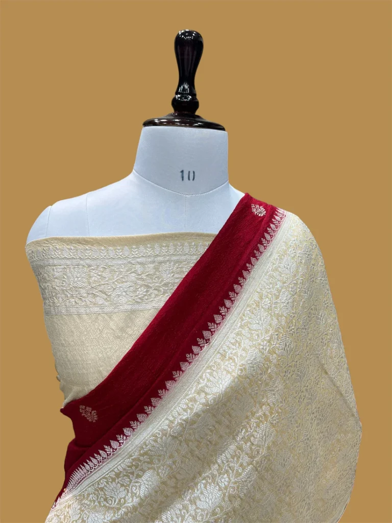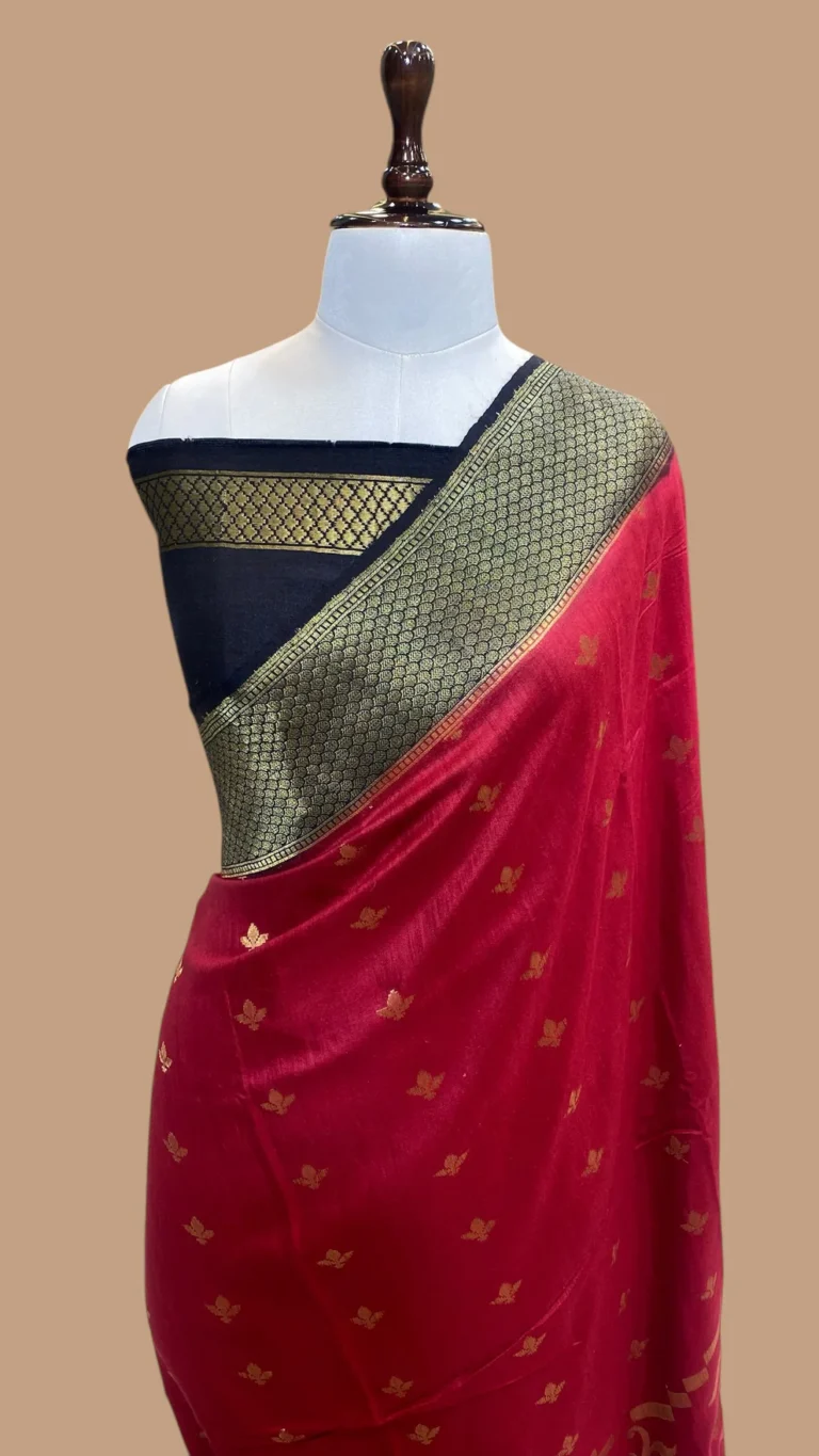 ‘PARKAR RED‘ HANDWOVEN PURE TUSSAR SILK KADHUA BANARASI SAREE
