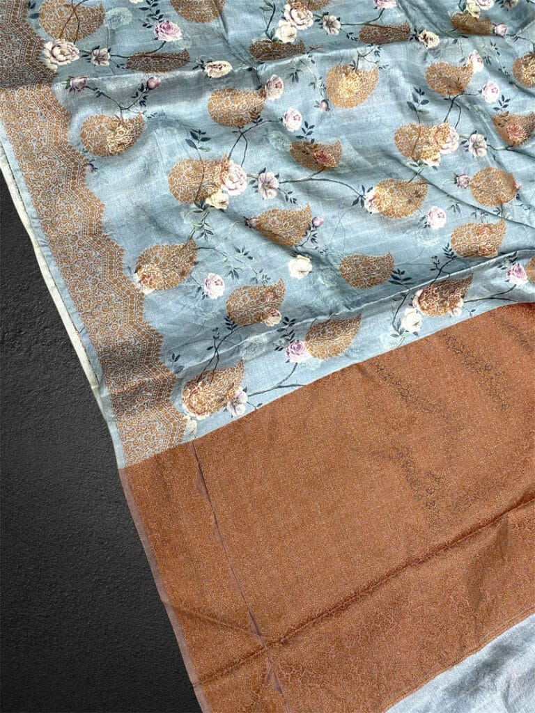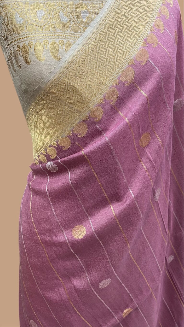 PURE BANARASI MOONGA TUSSAR SILK SAREE – Aanchal meenakari saree