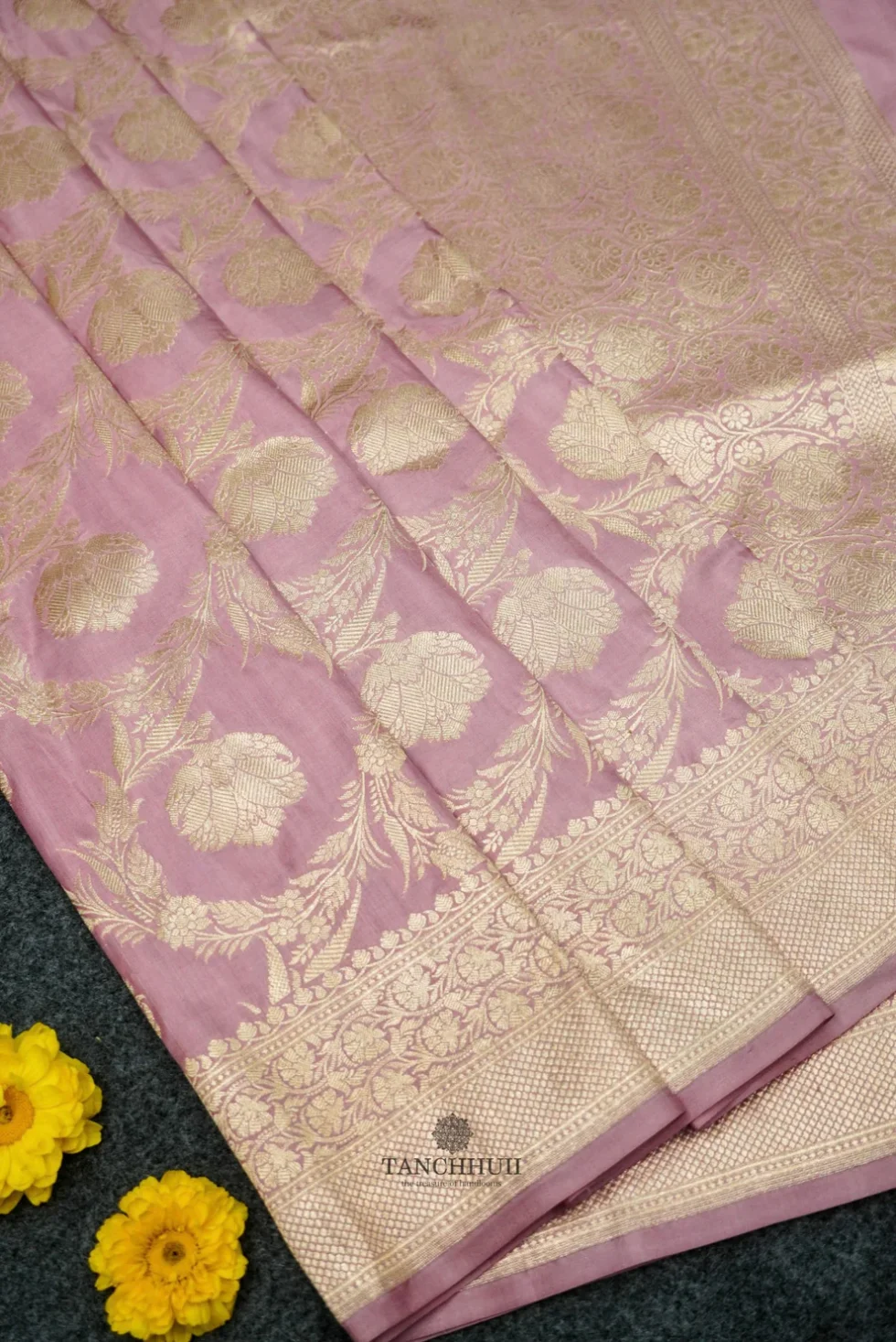 ‘AURA PEACH’ PURE KATAAN SILK JAAL BANARASI SAREE