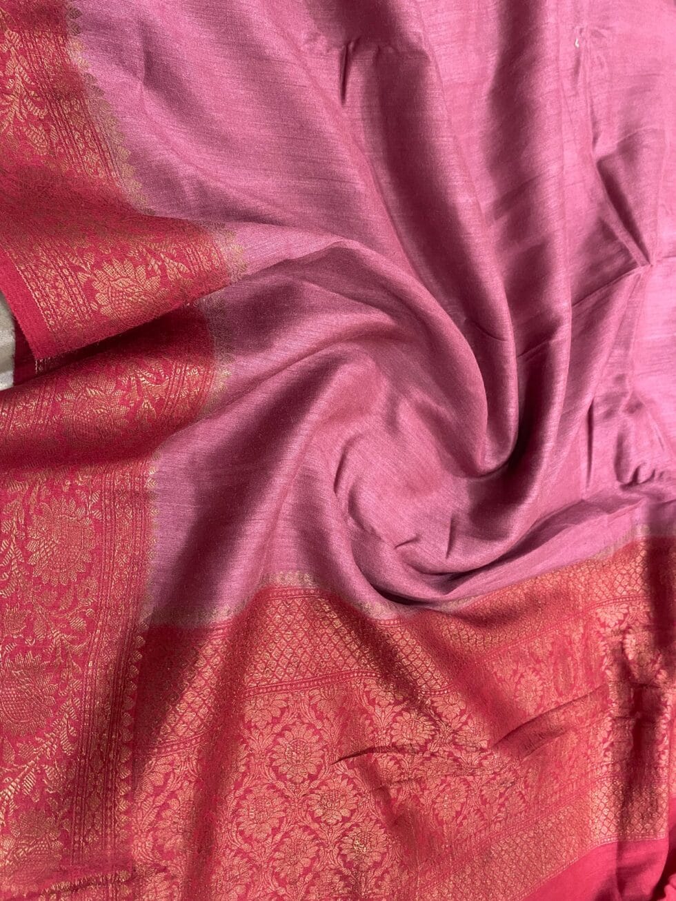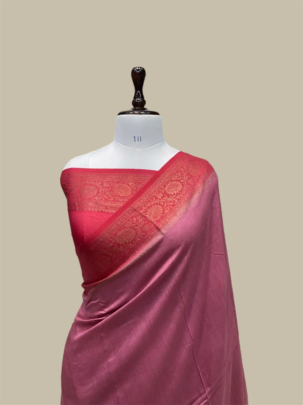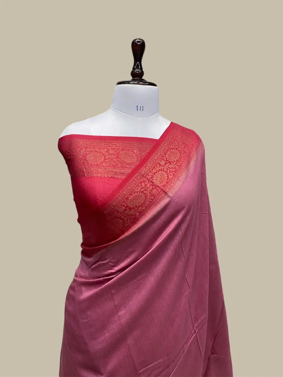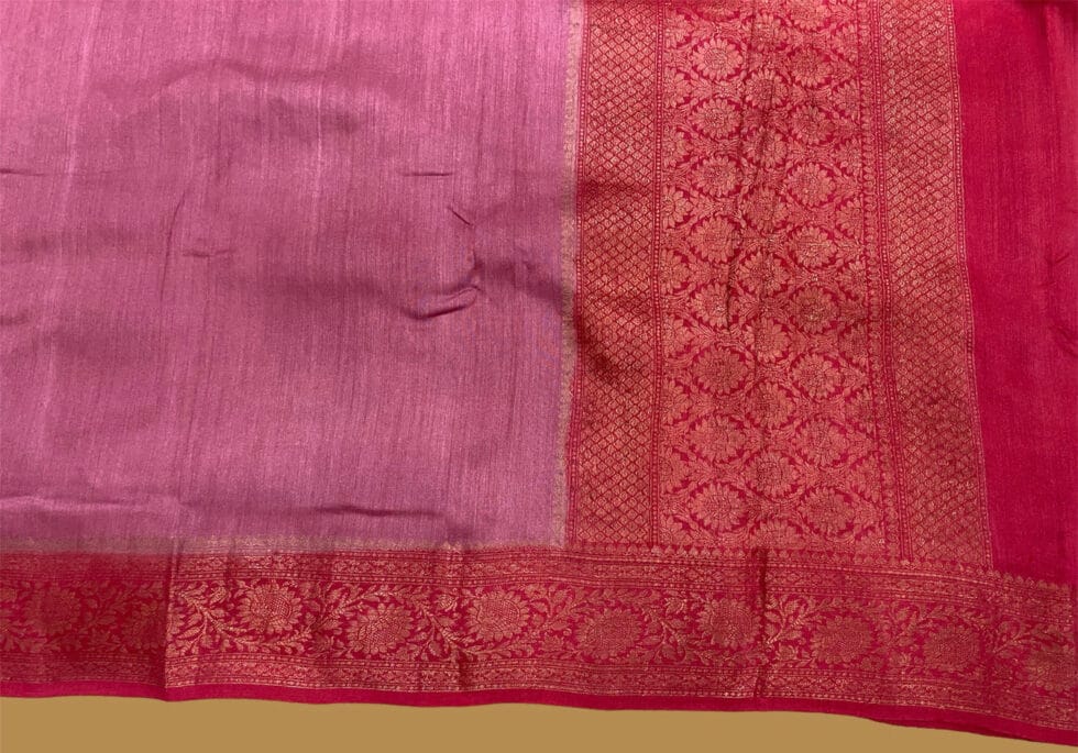 ‘AUSTIN MAJENTA AND RED’ PURE MOONGA SILK BANARASI BORDER PALLU SAREE