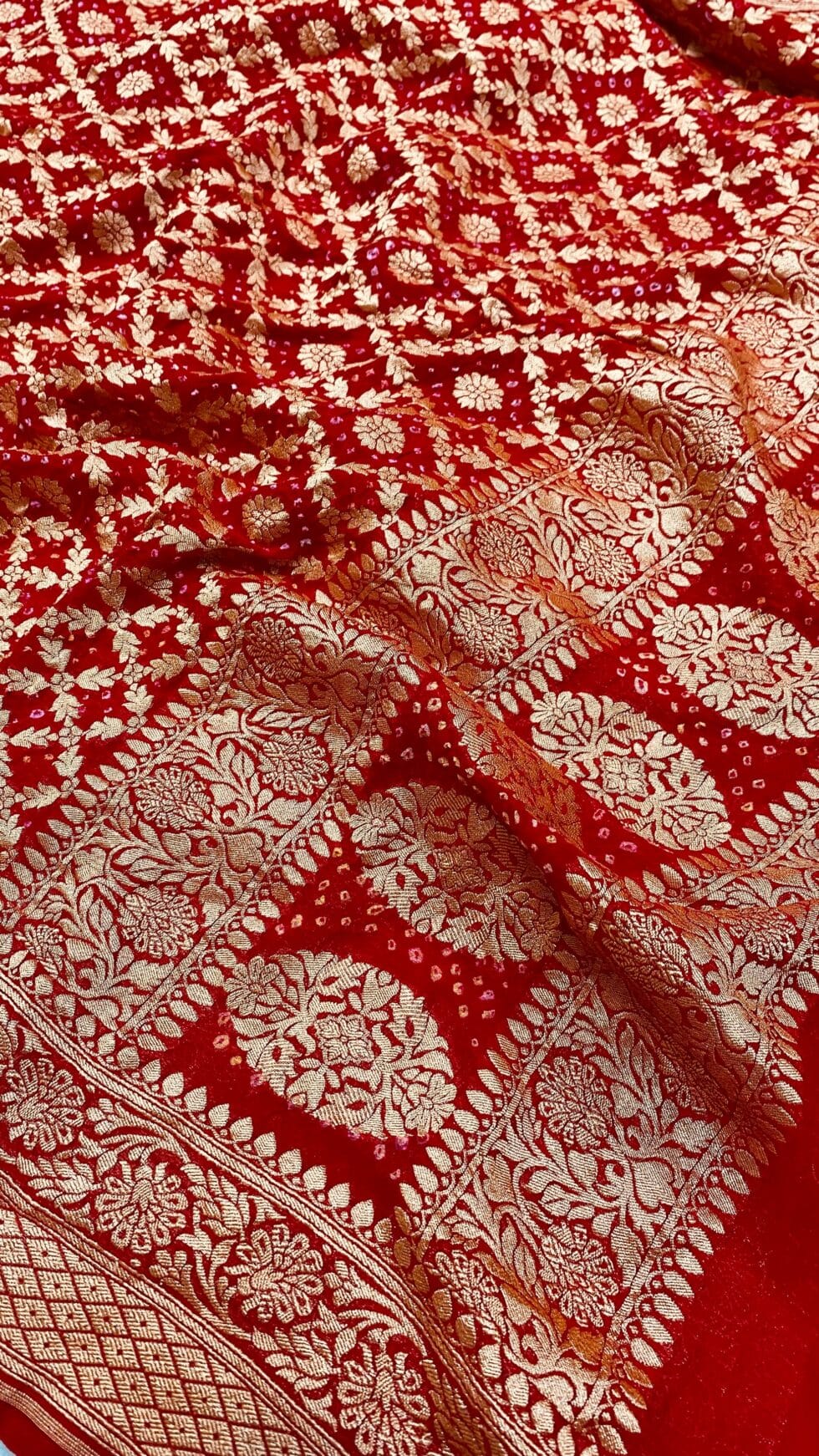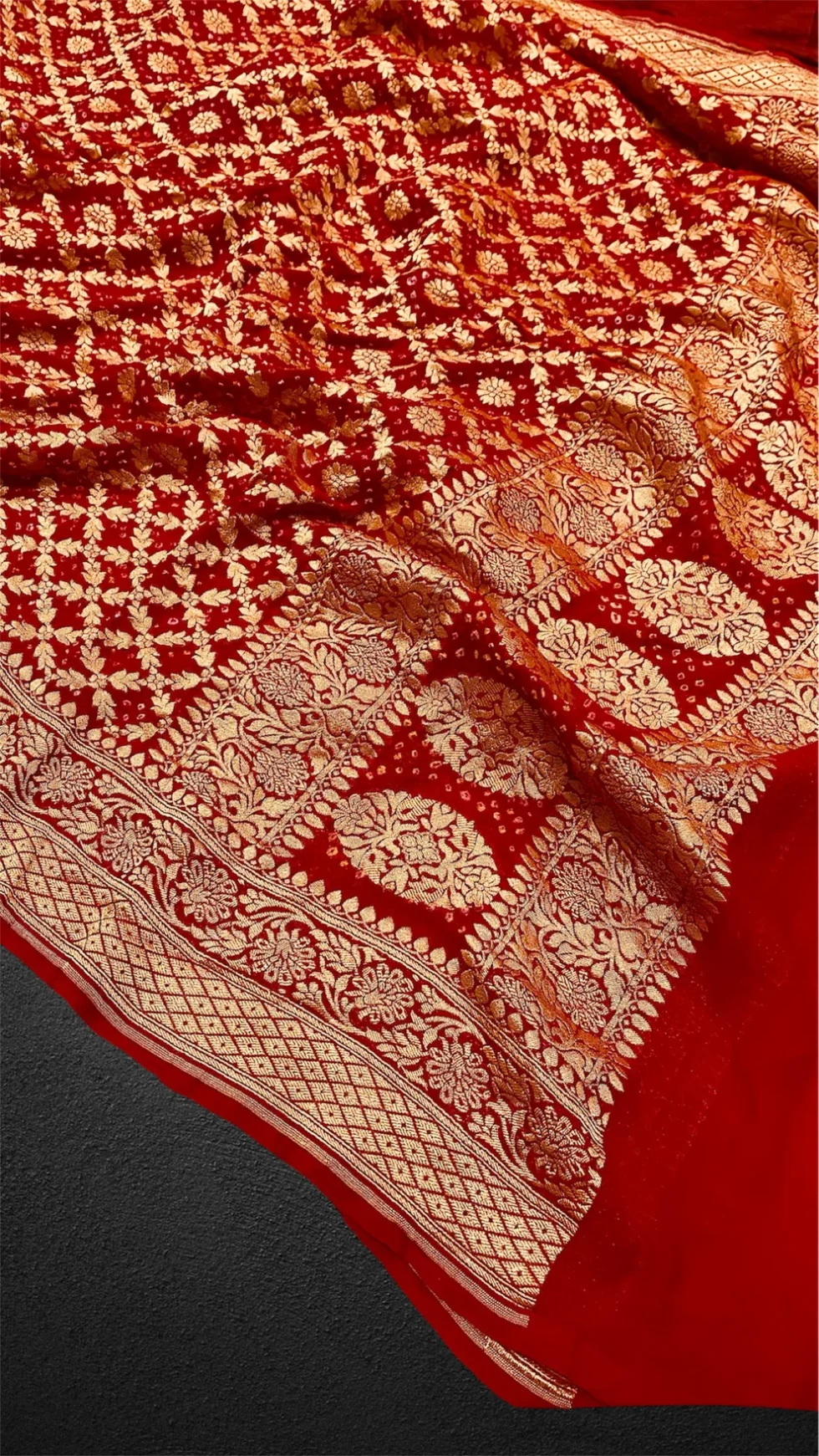 - Product – Pure khaddi georgette handloom bandhani banarasi dupatta