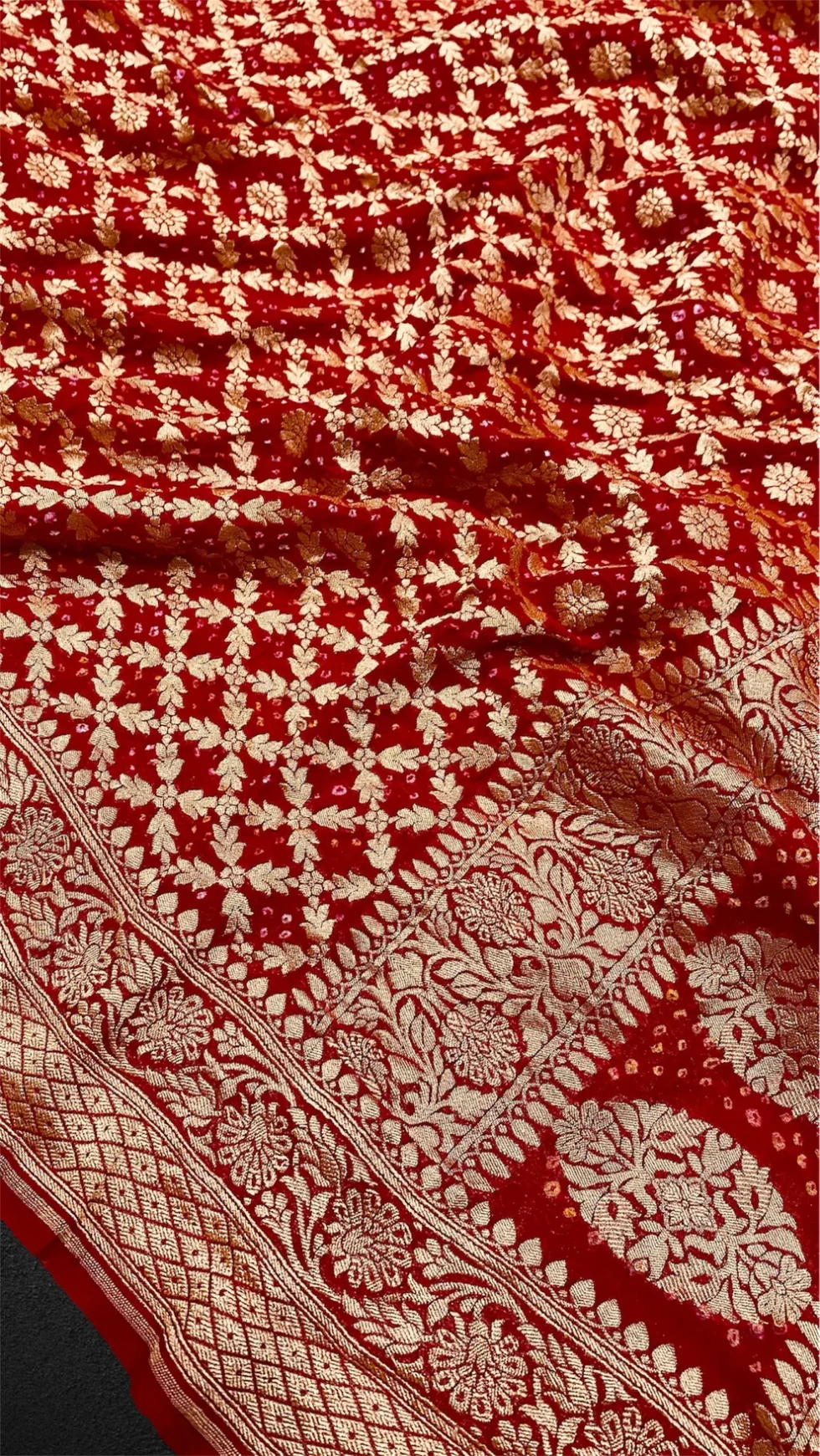 ‘BANDHANI’ PURE KHADDI GEORGETTE HANDLOOM BANDHANI BANARASI SAREE