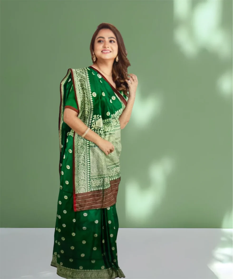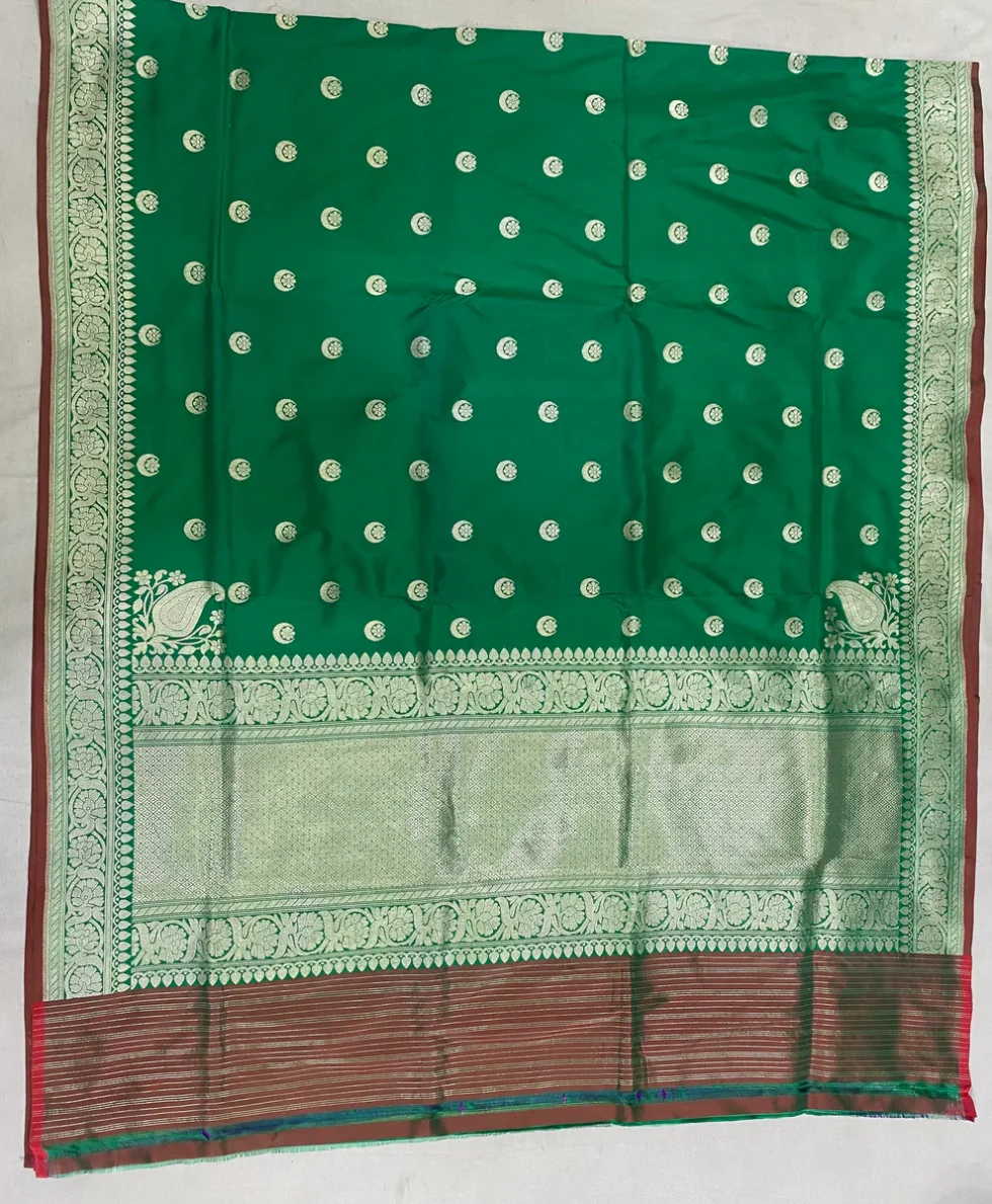 ‘CHAAND TAARA’ GREEN PURE KATAAN SILK BANARASI HANDWOVEN SAREE