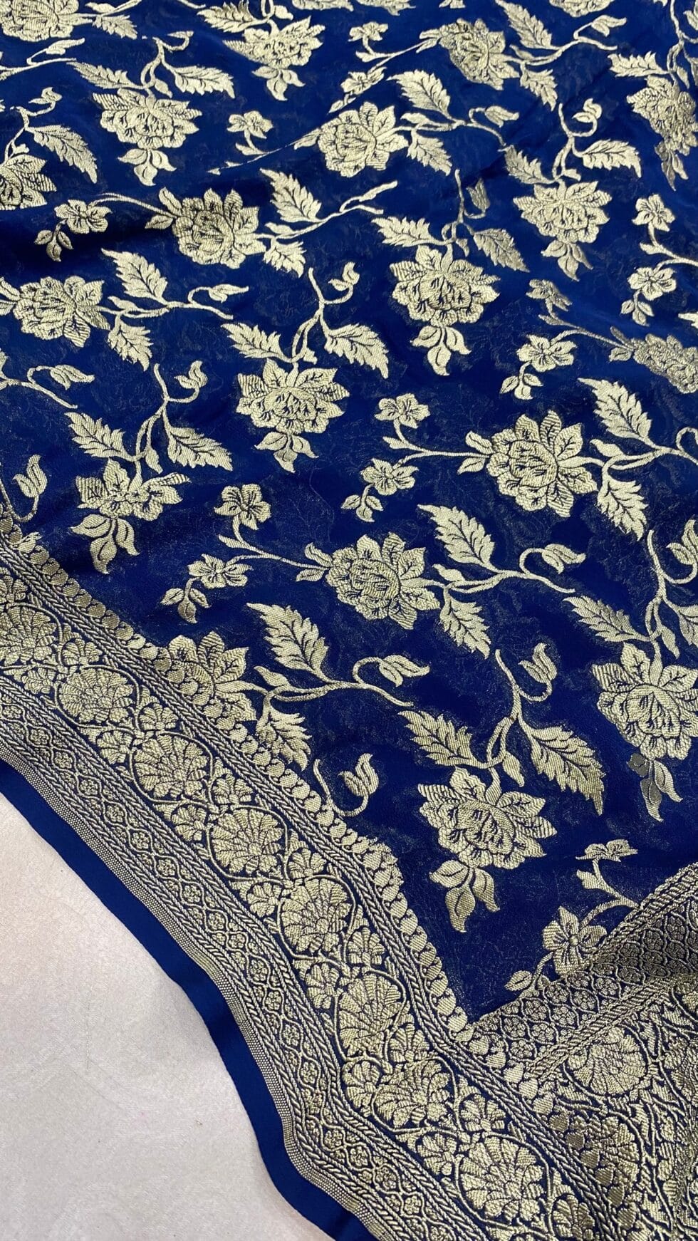 ‘GERMAN BLUE’ PURE KHADDI GEORGETTE HANDLOOM BANARASI DUPATTA