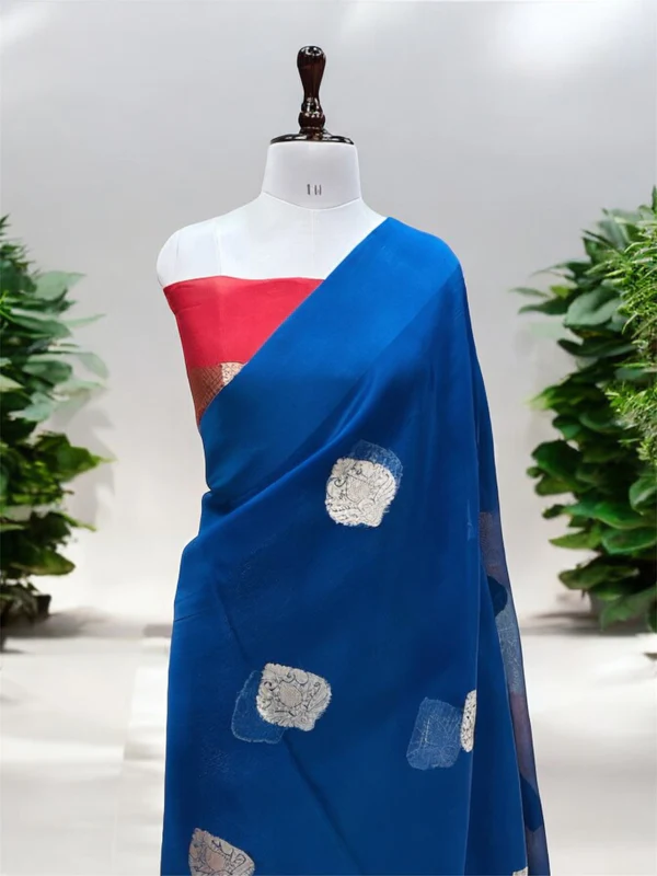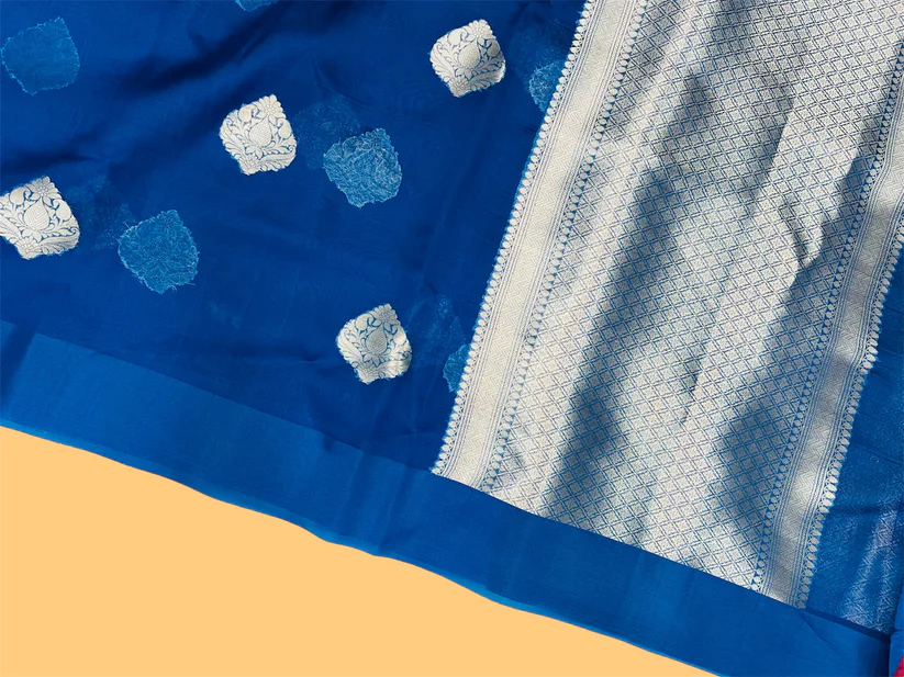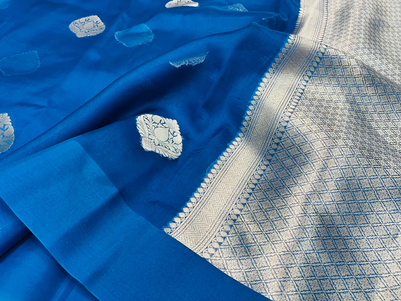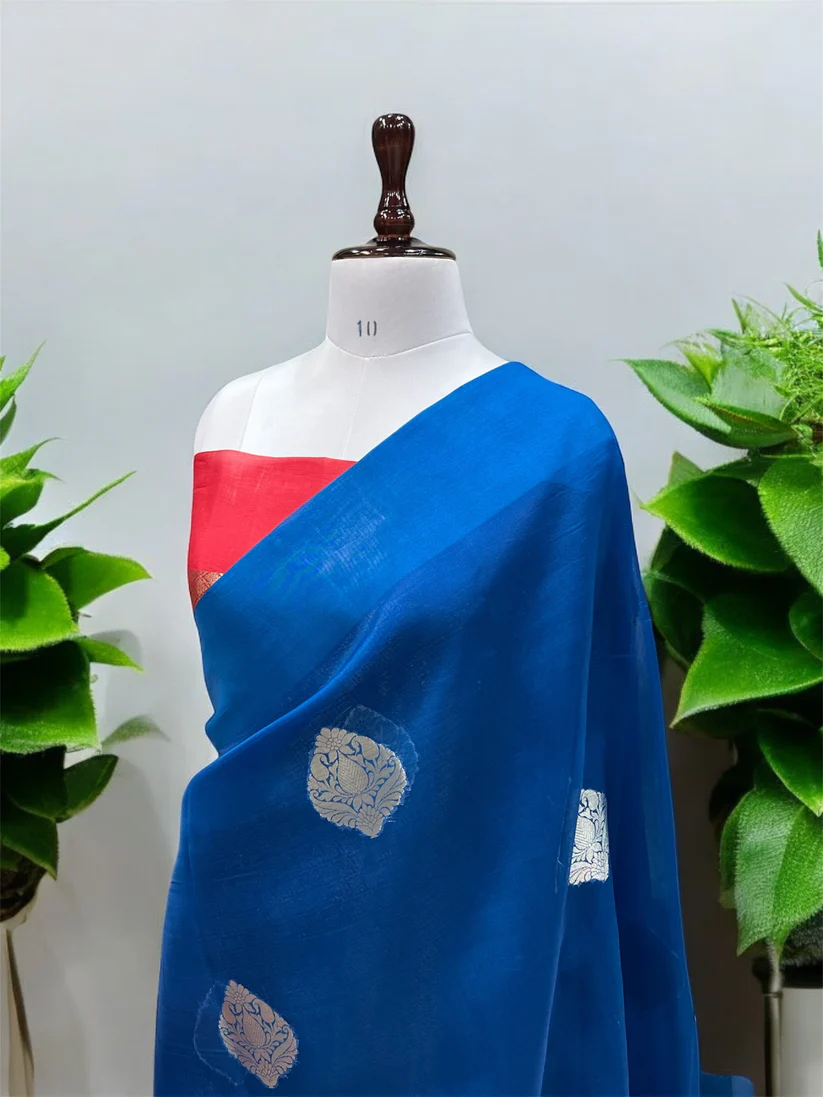 ‘GERMAN BLUE’ PURE KORA HANDLOOM BANARASI SAREE