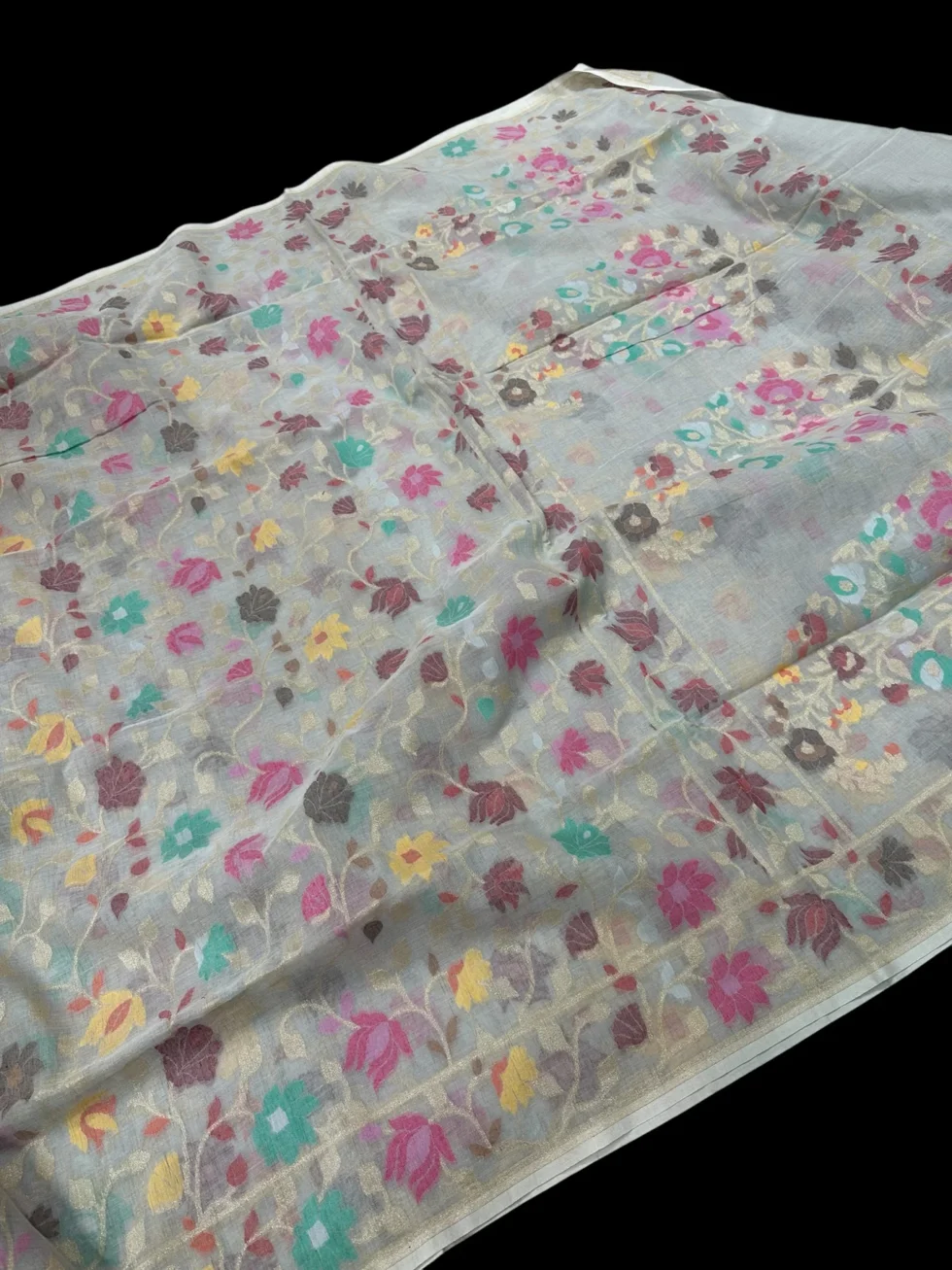 HANDLOOM PURE COTTON JAMDANI BANARASI SAREE