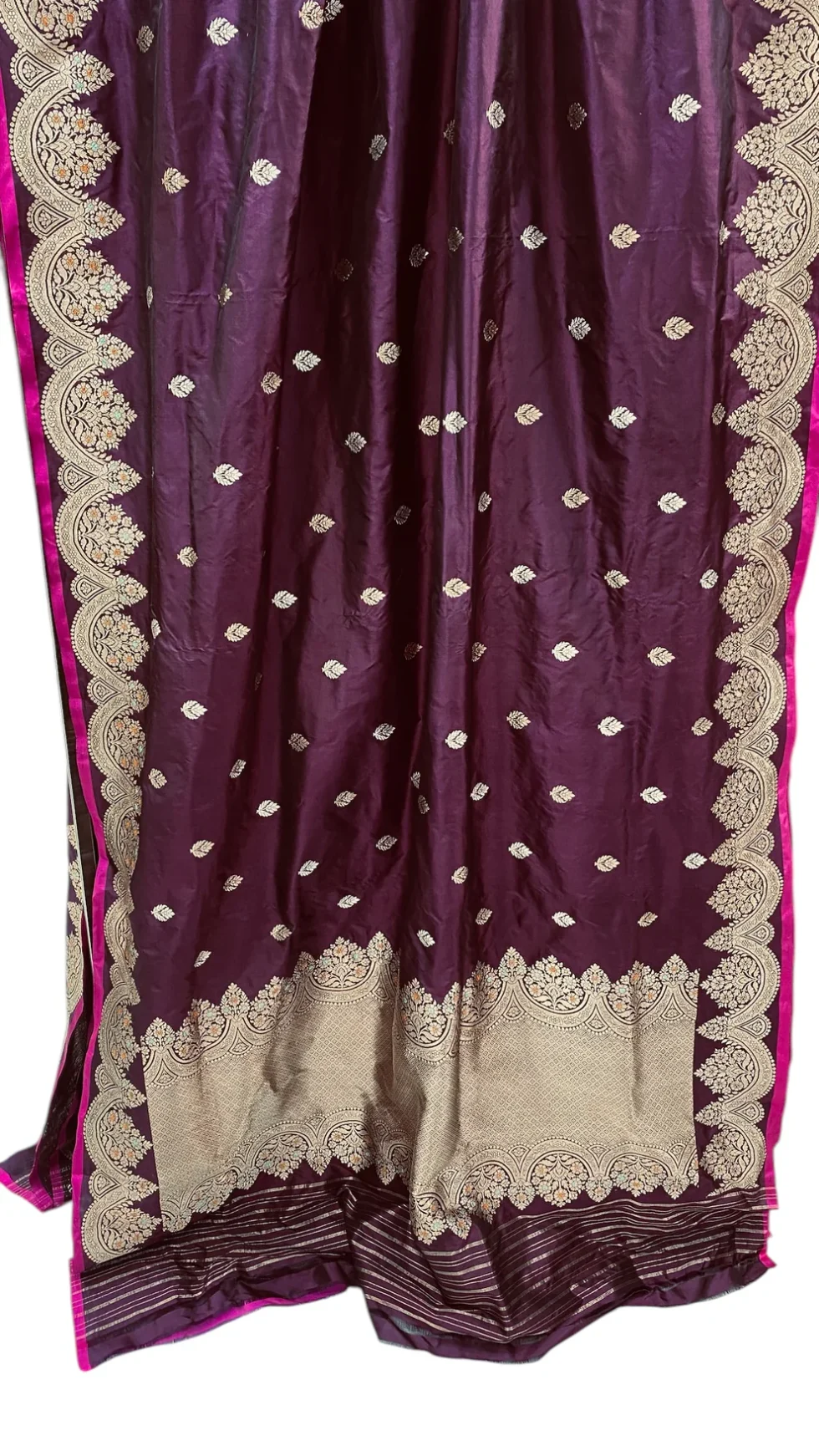 - Speciality – The glorious outline of kadua border lovingly handwoven on a base of resplendent silk in Sona or Gold zari kadua motifs. Incredible in its details and a mirror to the splendour of Banaras.