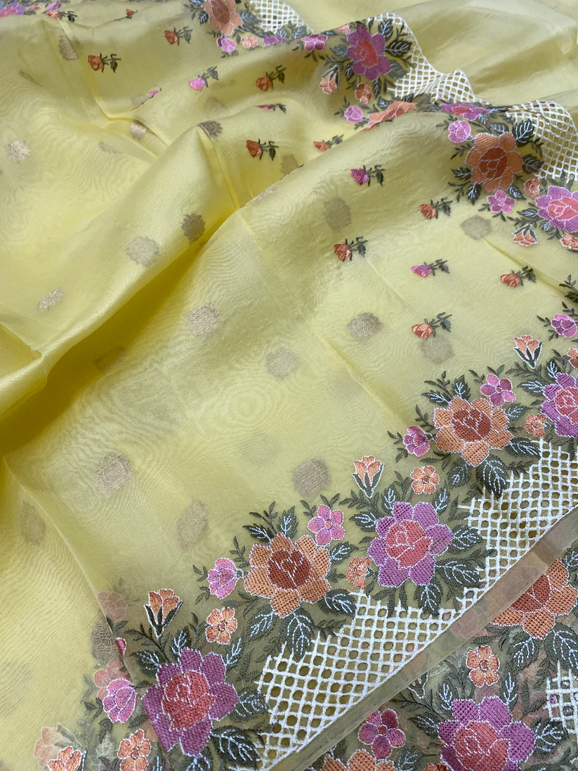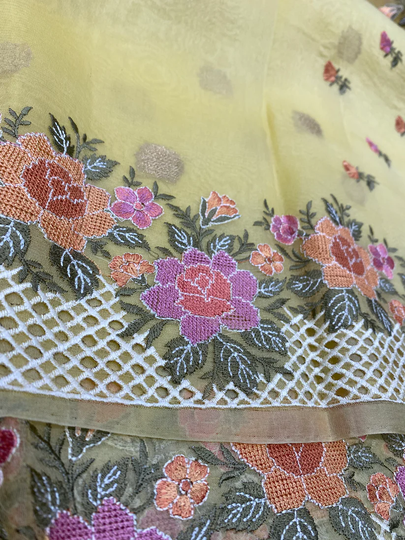 Handwoven kora chikankari banarasi saree