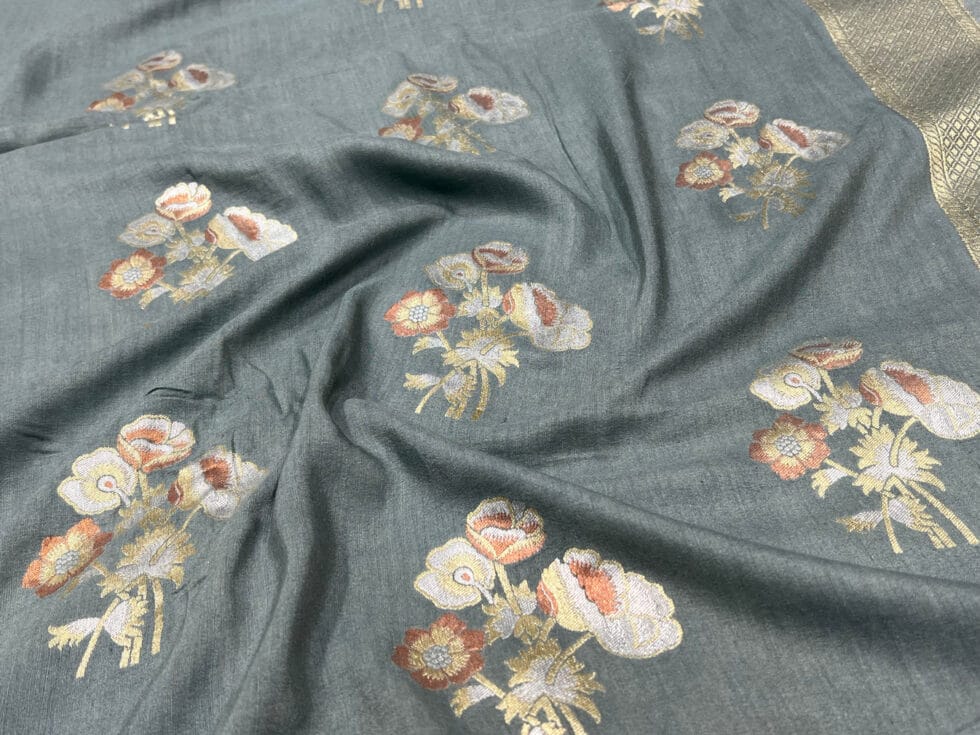 HANDWOVEN MOONGA SILK TILFI BANARASI SAREE