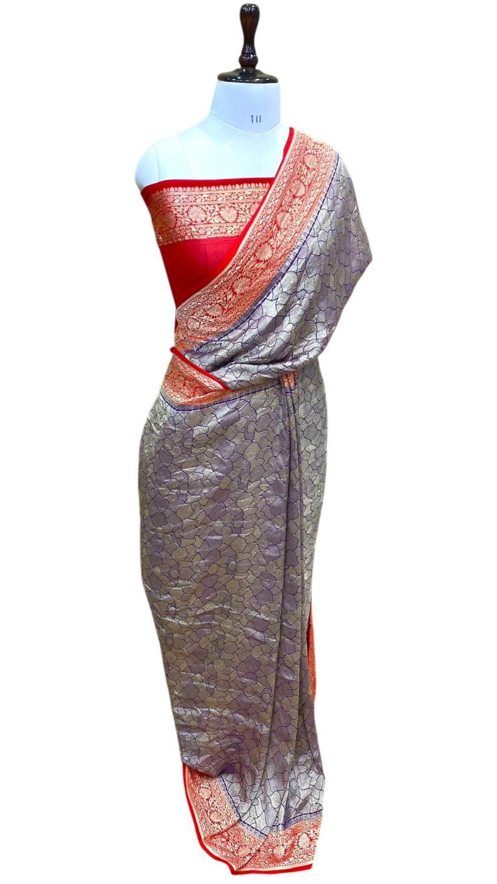 Handwoven pure khaddi georgette banarasi tanchhoi saree