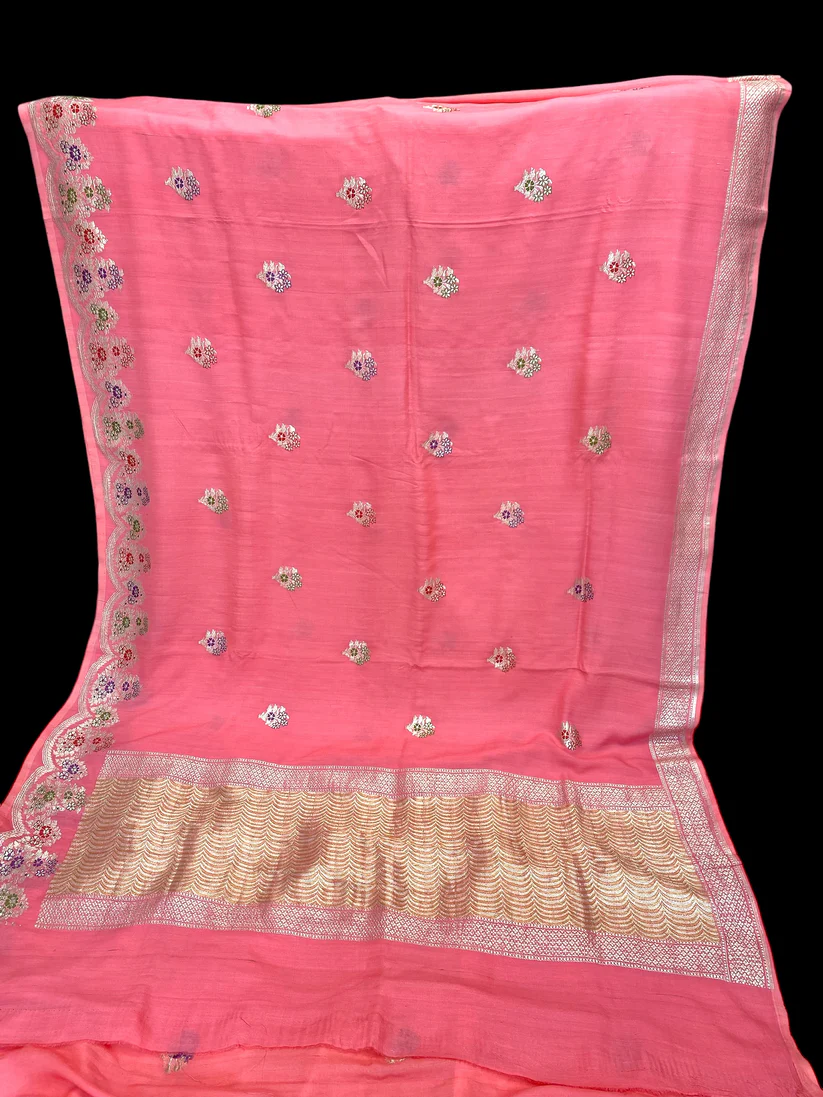 - Technique -An enduring Kadwa weave and fine Meenakari technique. The elaborate and laborious Kadwa (Kadhua) technique involves hand-weaving each motif separately. It takes longer on the handloom, but makes a more robust pattern, which stands out on the fabric. Meenakari involves the painstaking addition of supplementary coloured resham threads during the hand-weaving process