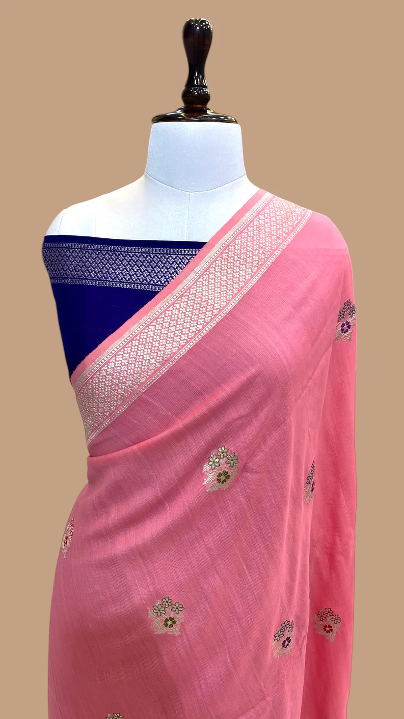 HANDWOVEN TUSSAR GEORGETTE SILK BANARASI SAREE