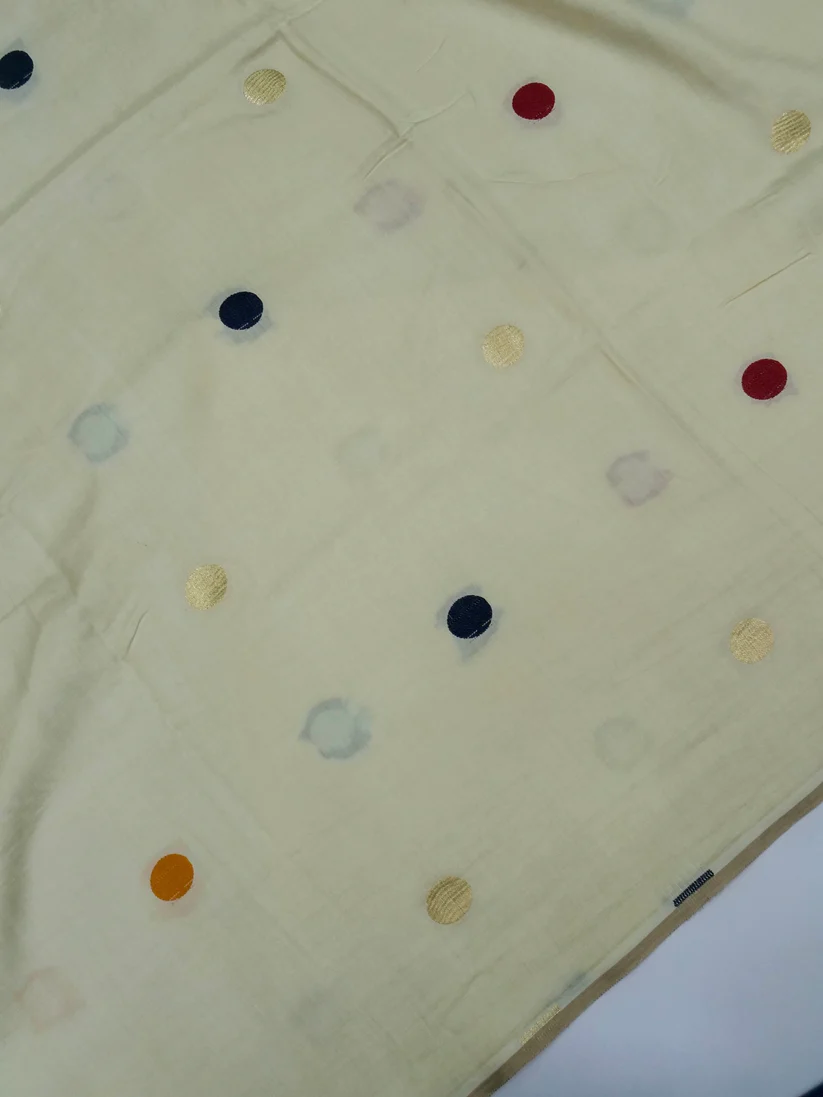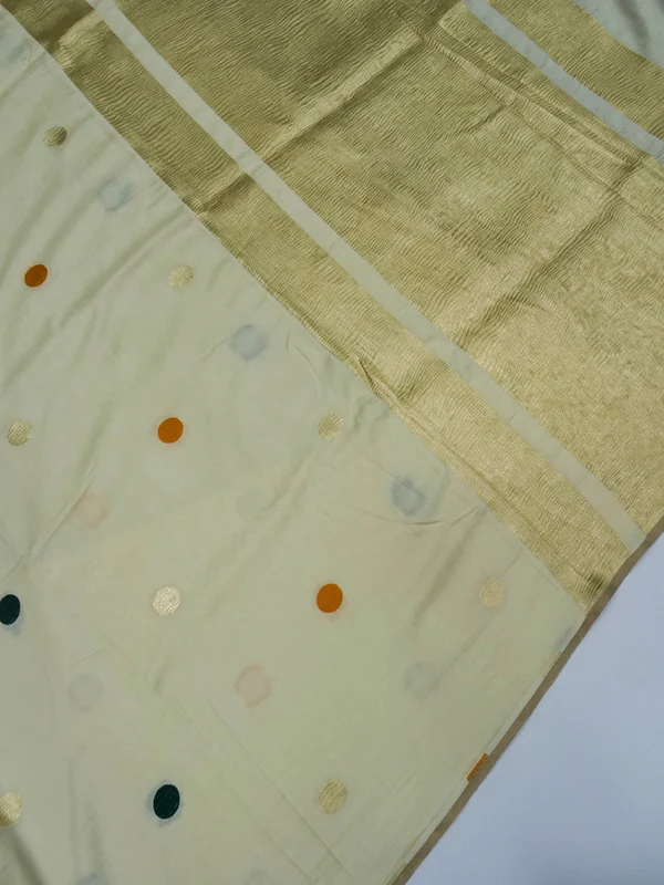 IVORY’ PURE MASHRU SATIN SILK MULTI ASHARFI BUTTI BANARASI SAREE