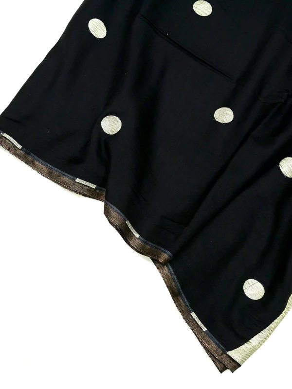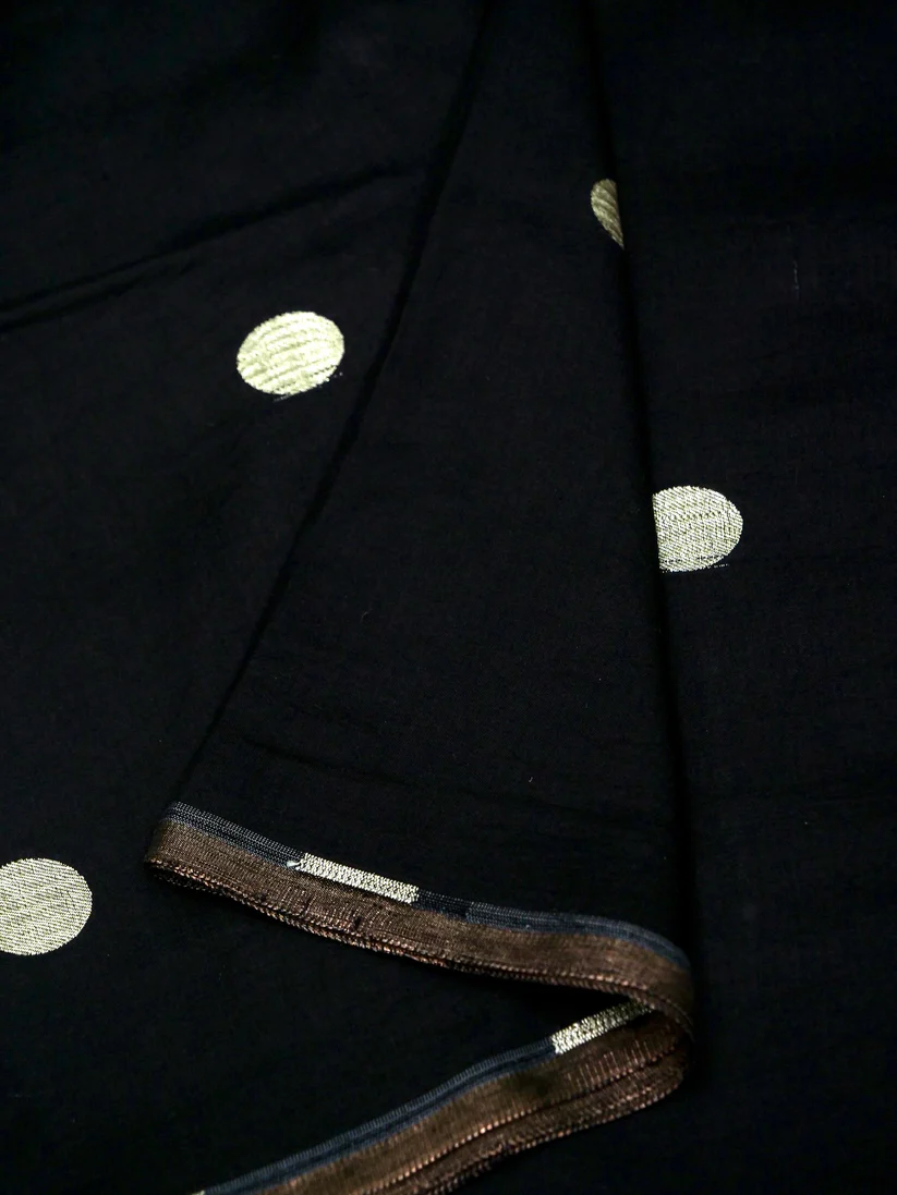 ‘JET BLACK’ PURE MASHRU SATIN SILK BANARASI ASHARFI DOTT SAREE