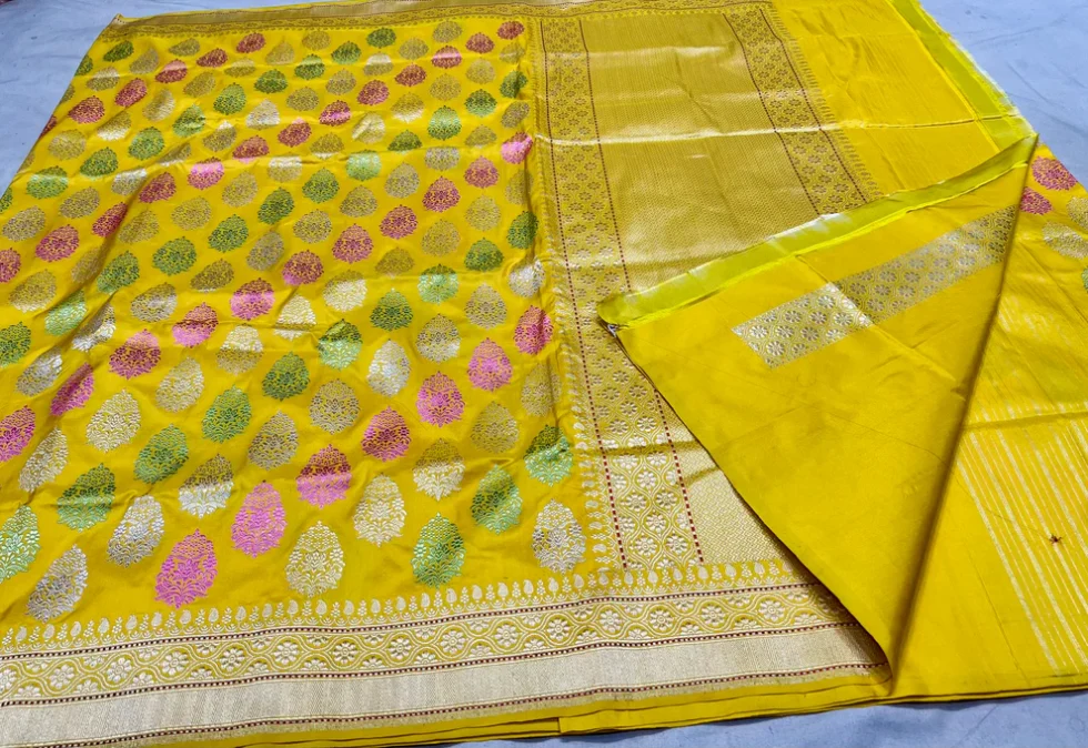 ‘LEMONADE’ PURE KATAN SILK BANARASI HANDWOVEN BUTTA JANGLA SAREE
