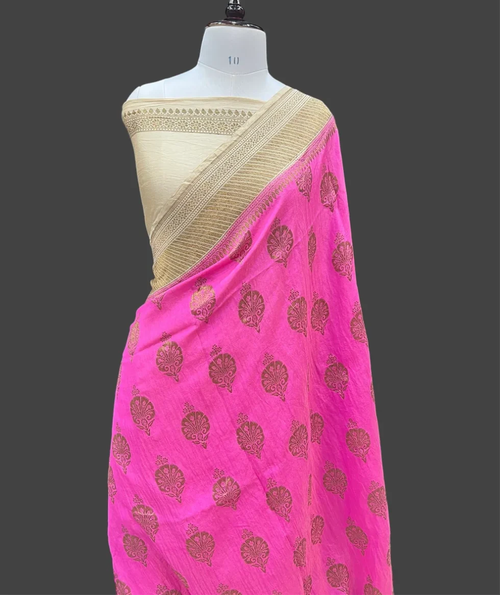 LOVELY PINK PURE MOONGA SILK TISSUE BANARASI SAREE