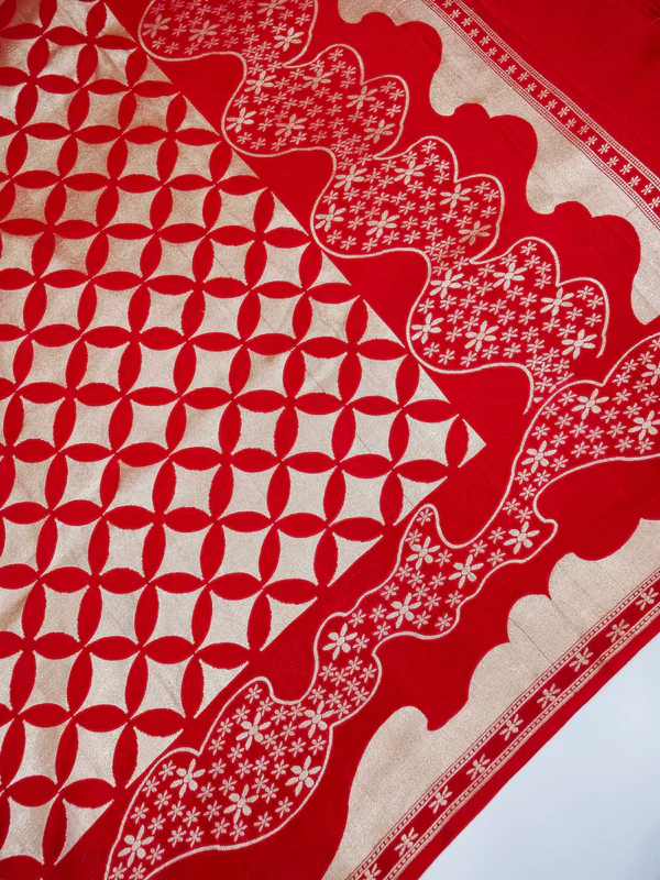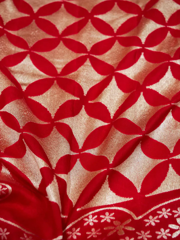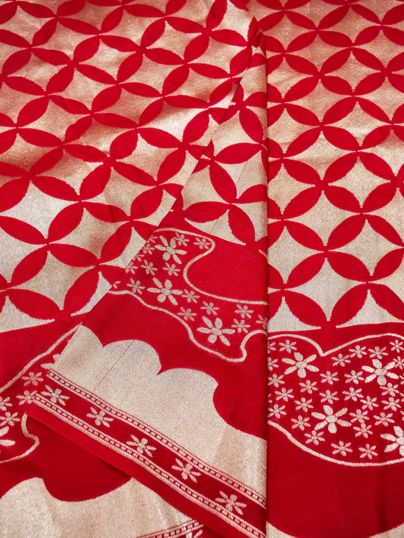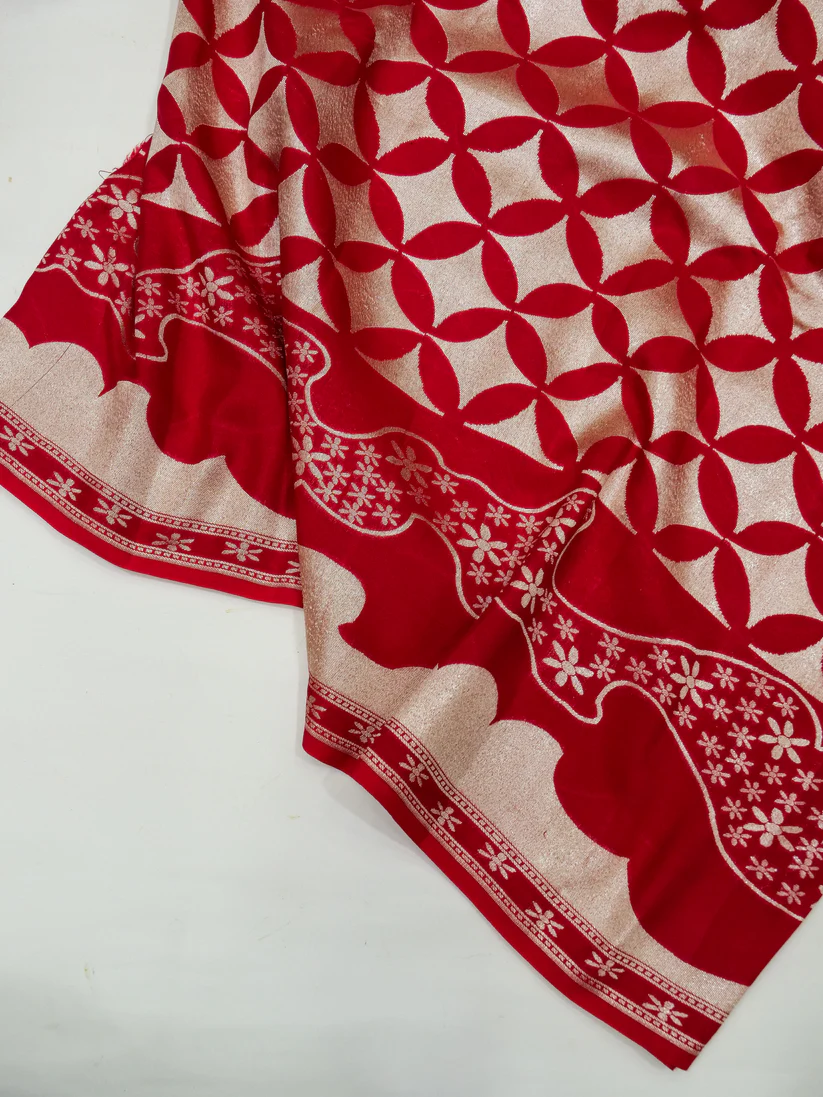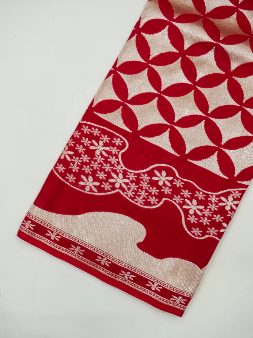 MASHRU SATIN SILK SAREE-Carpet Red pure Banarasi Mashru Satin Silk Saree