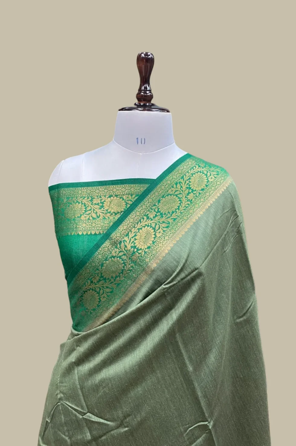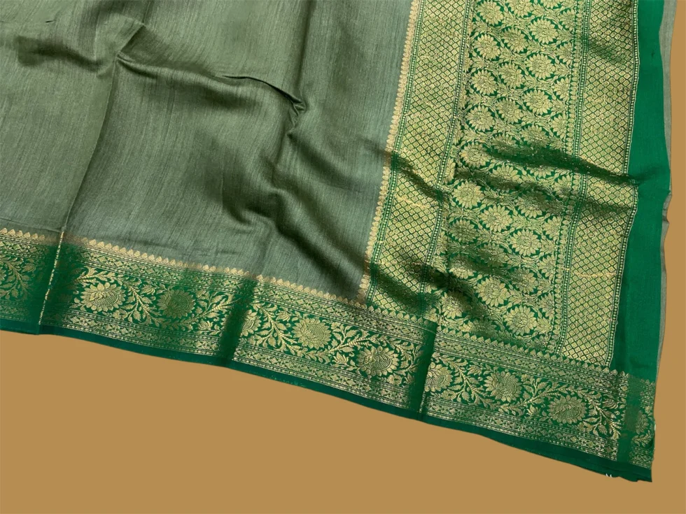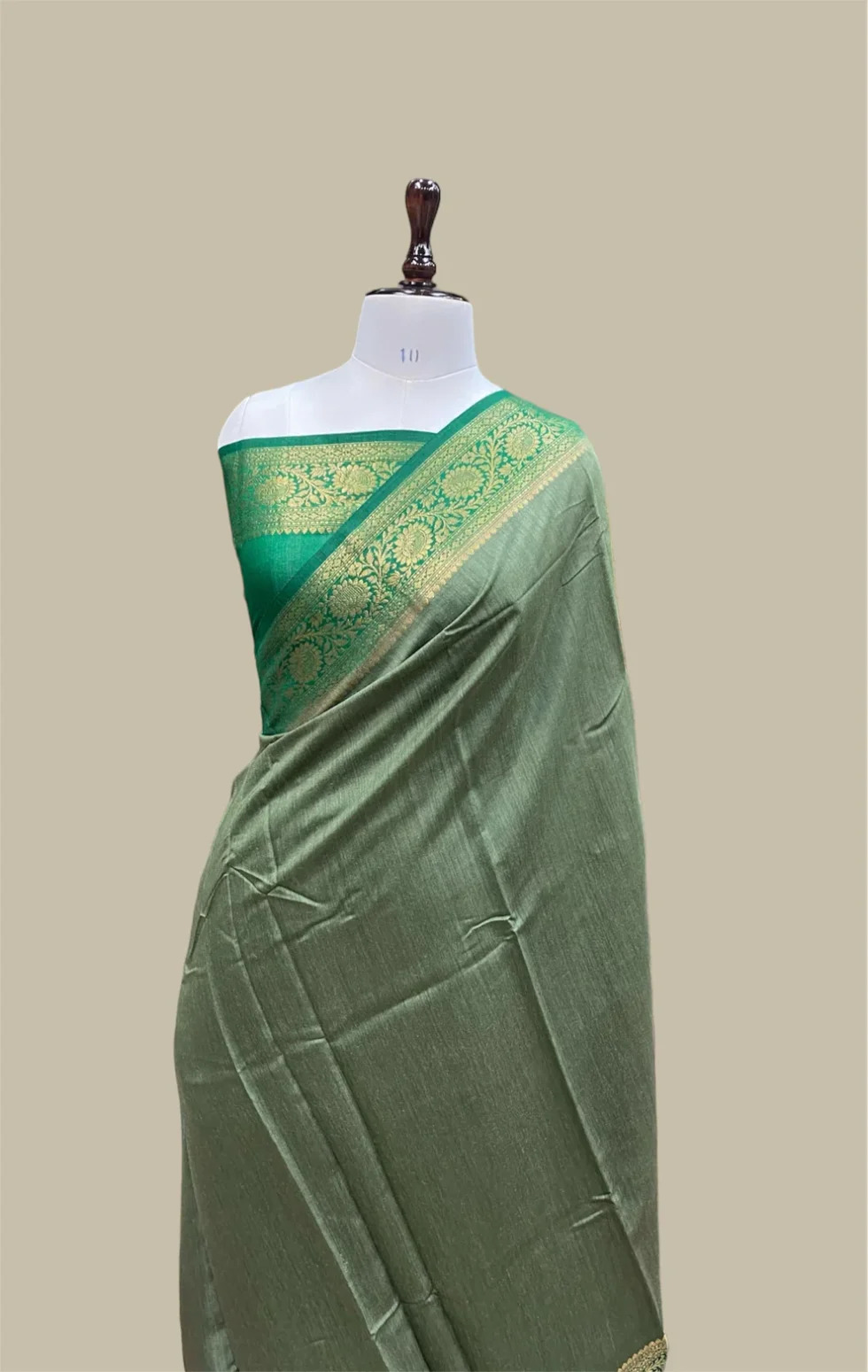 ‘MEHENDI GREEN’ PURE MOONGA SILK BANARASI BORDER PALLU SAREE