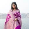 Introducing the Dark brown with chilly red Pure Moonga Silk Saree – a timeless ensemble that seamlessly blends traditional elegance with contemporary style. Crafted with utmost precision and finesse, this saree is a testament to the rich heritage of Indian silk weaving.