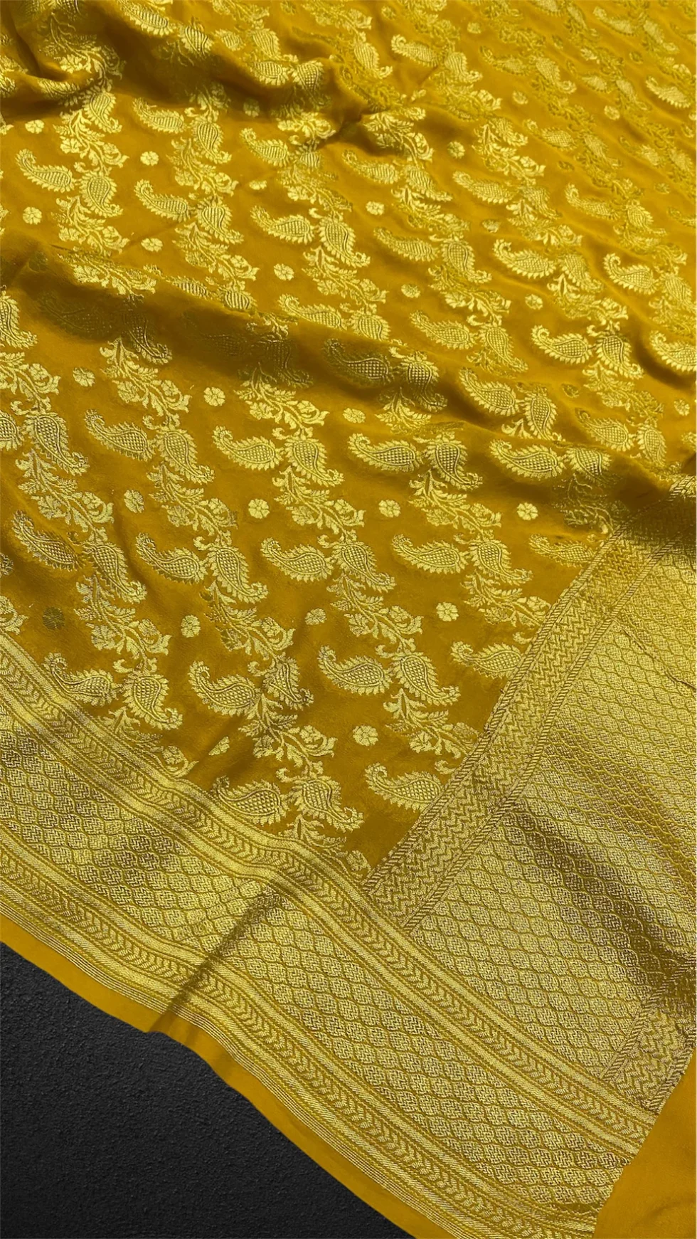 ‘MUSTARD’ PURE KHADDI GEORGETTE HANDLOOM BANARASI DUPATTA