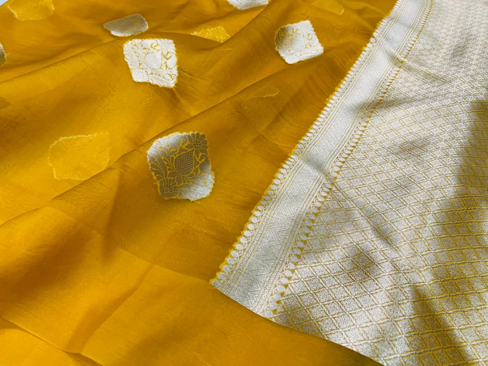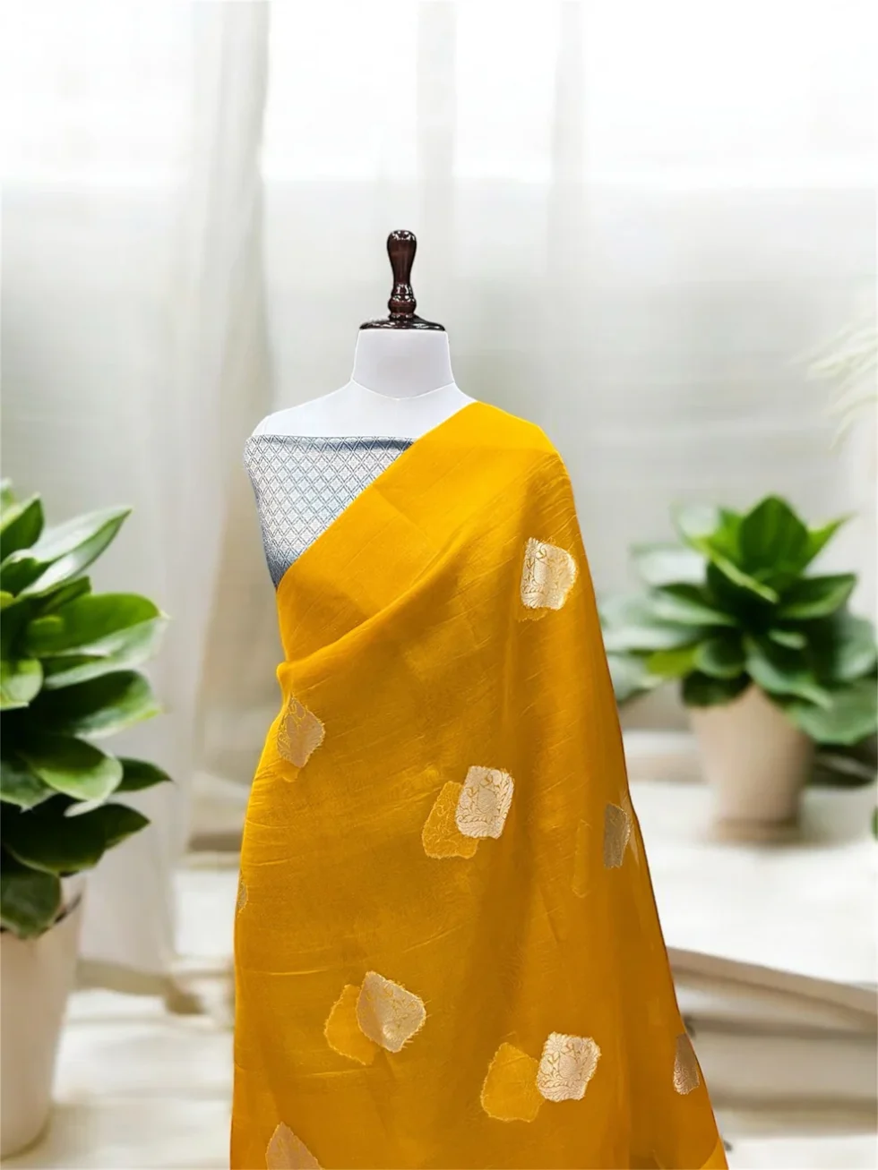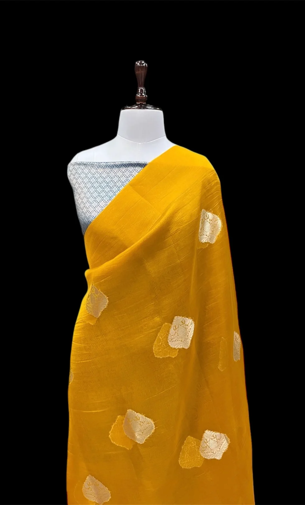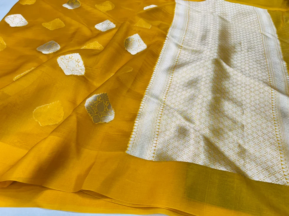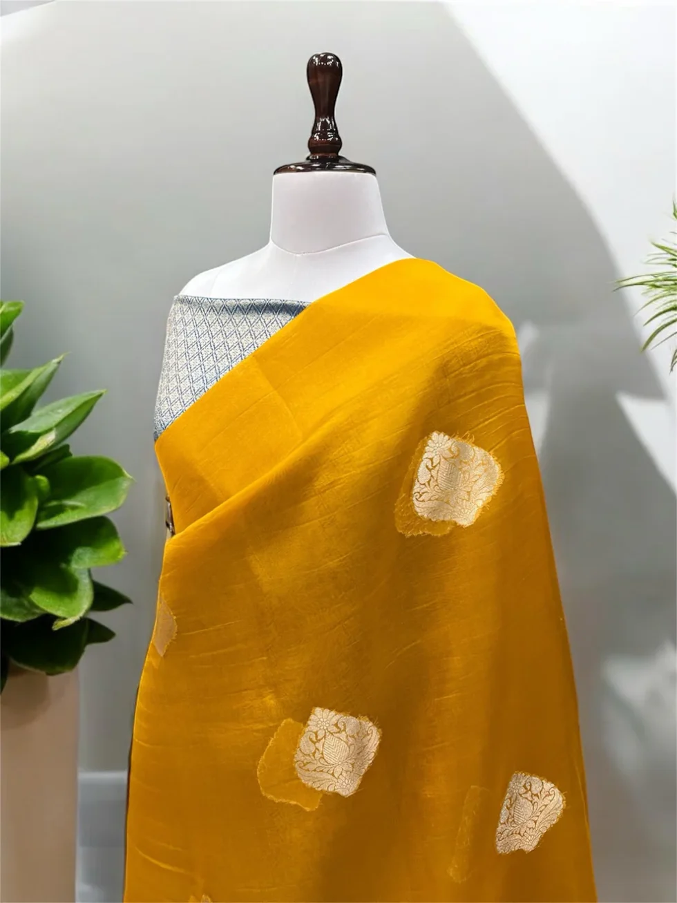 ‘MUSTARD’ PURE KORA HANDLOOM BANARASI SAREE