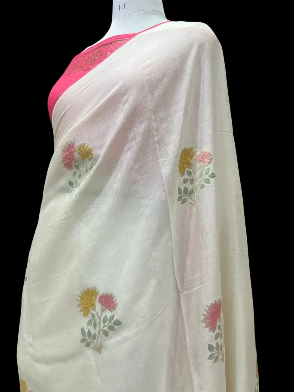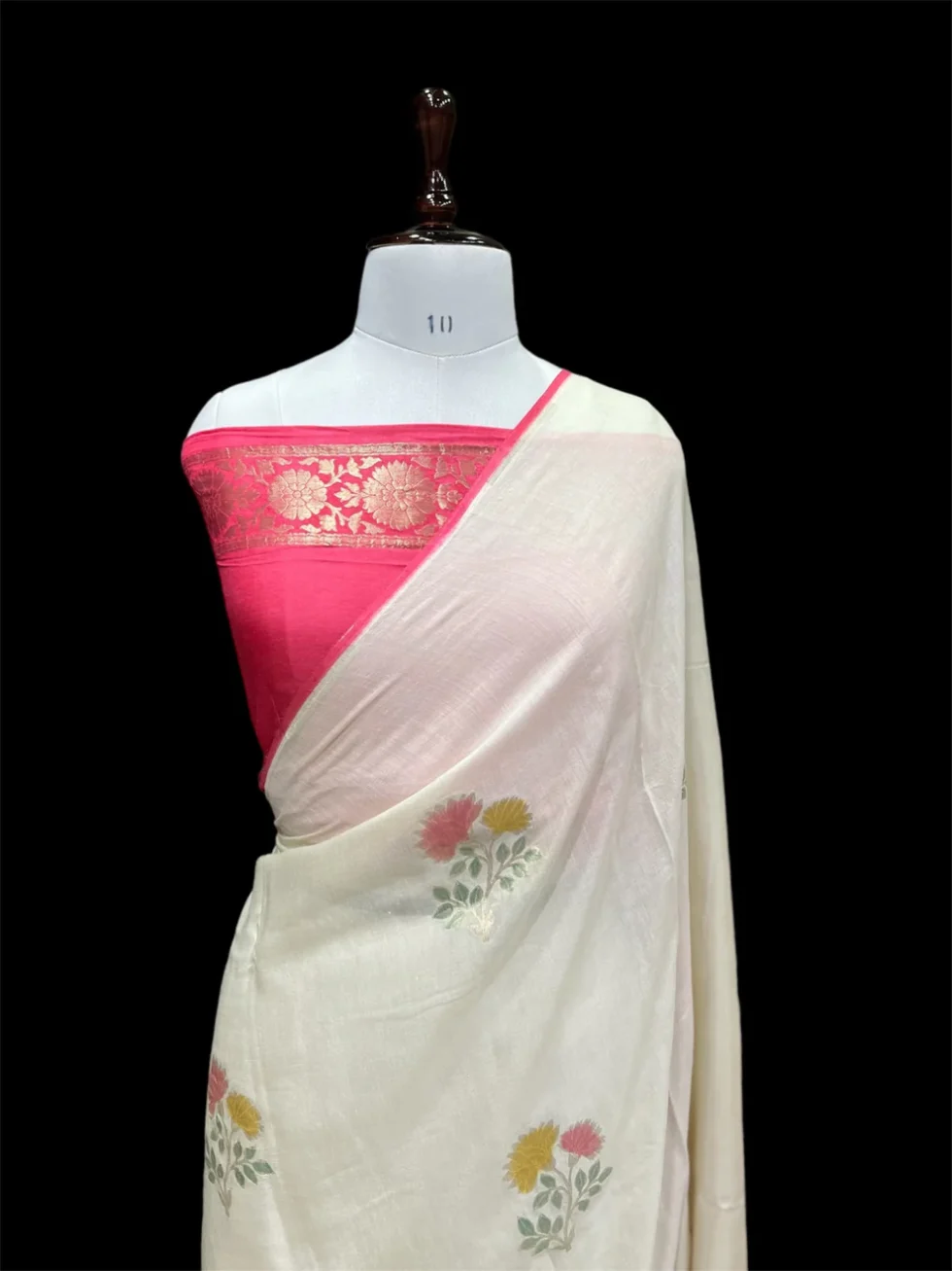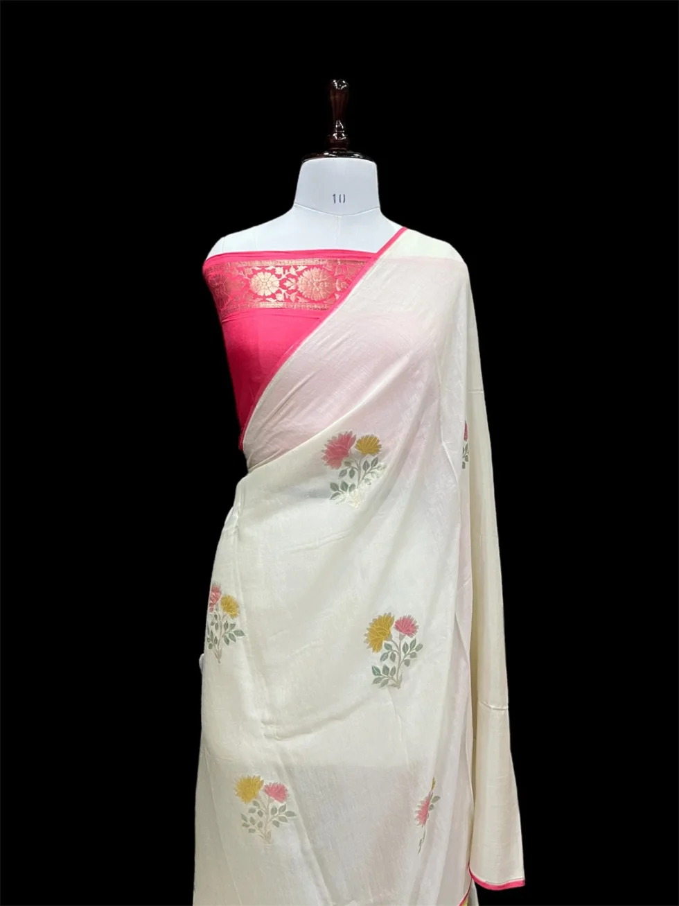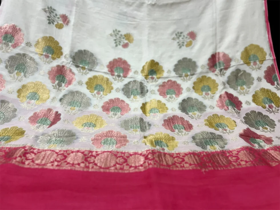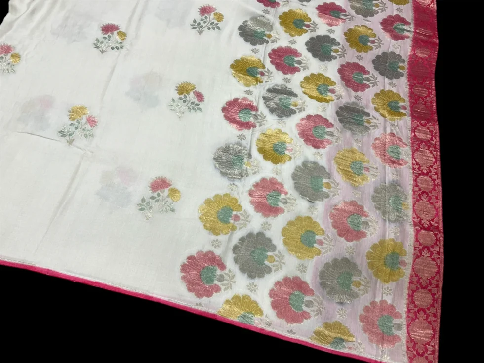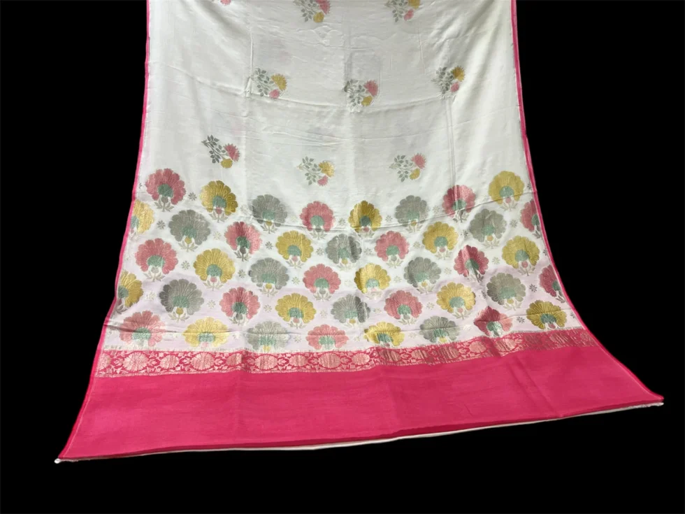 ‘OFF WHITE’ PURE MOONGA TUSSAR SILK BANARASI SAREE