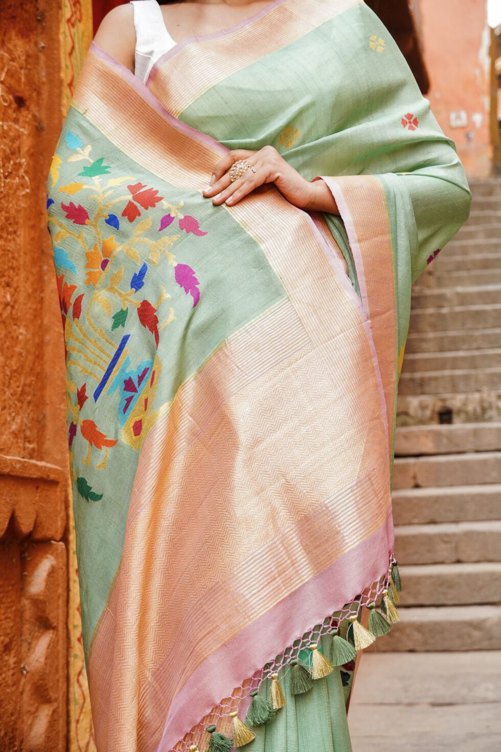 Every leaf of Aanchal pallu and butti has been turning and it’s called kadhwa