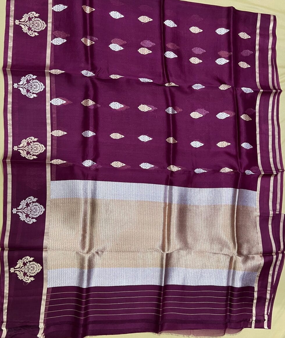 - Technique – This Splendid Masterpiece is made of the finest KADHUA technique. KADHUA WEAVE is the most laborious, Artistic tradition of Banaras.