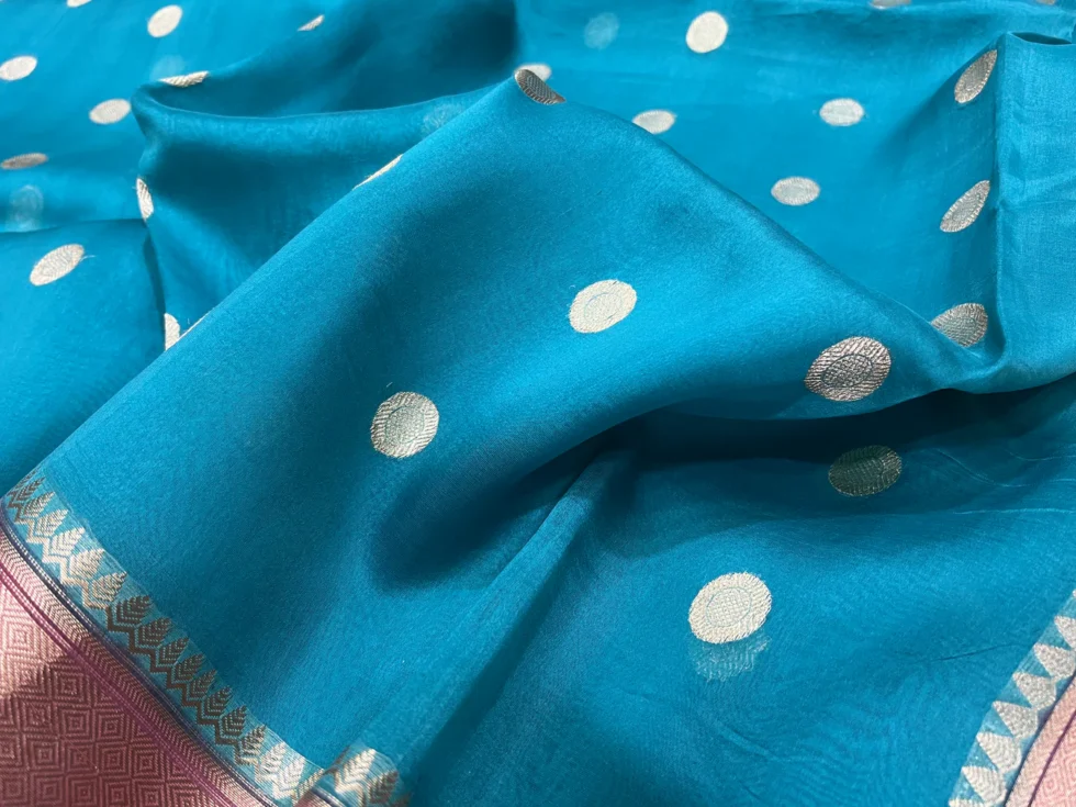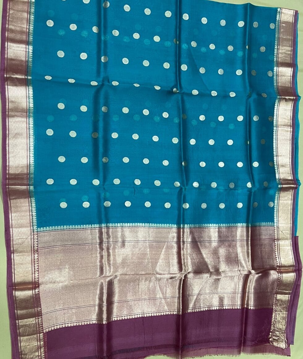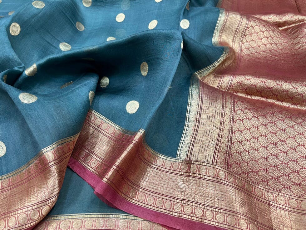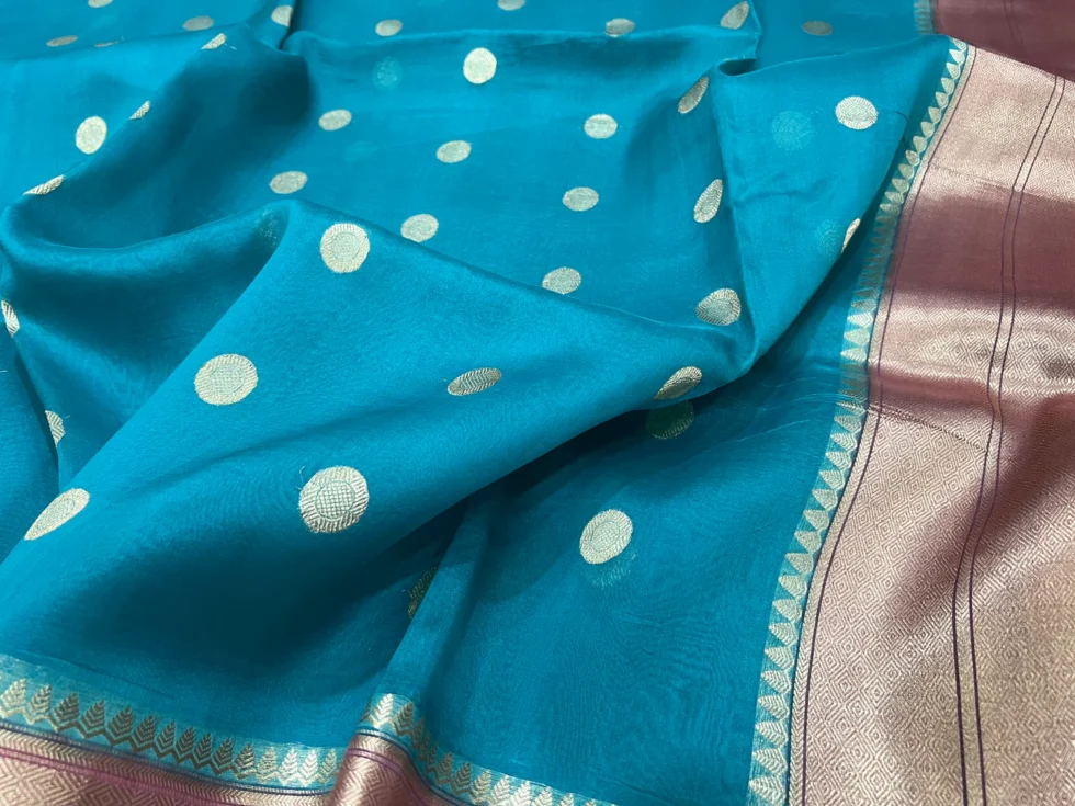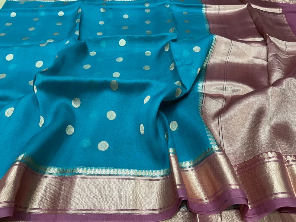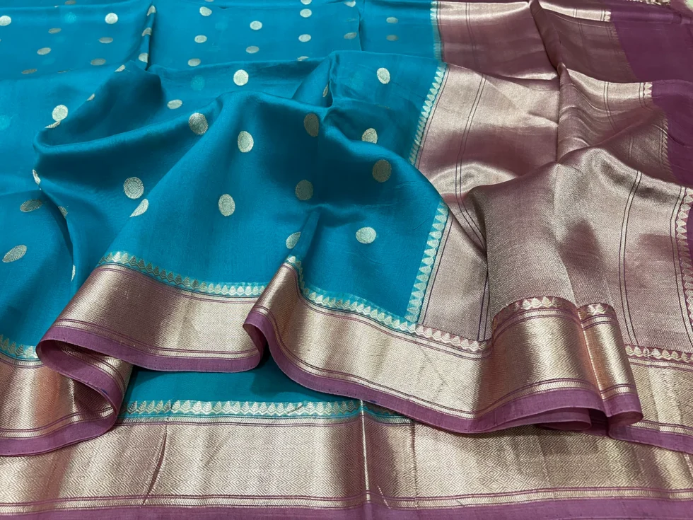 PURE BANARASI HANDWOVEN ORGANZA SILK SAREE – KADHUA MOTIF