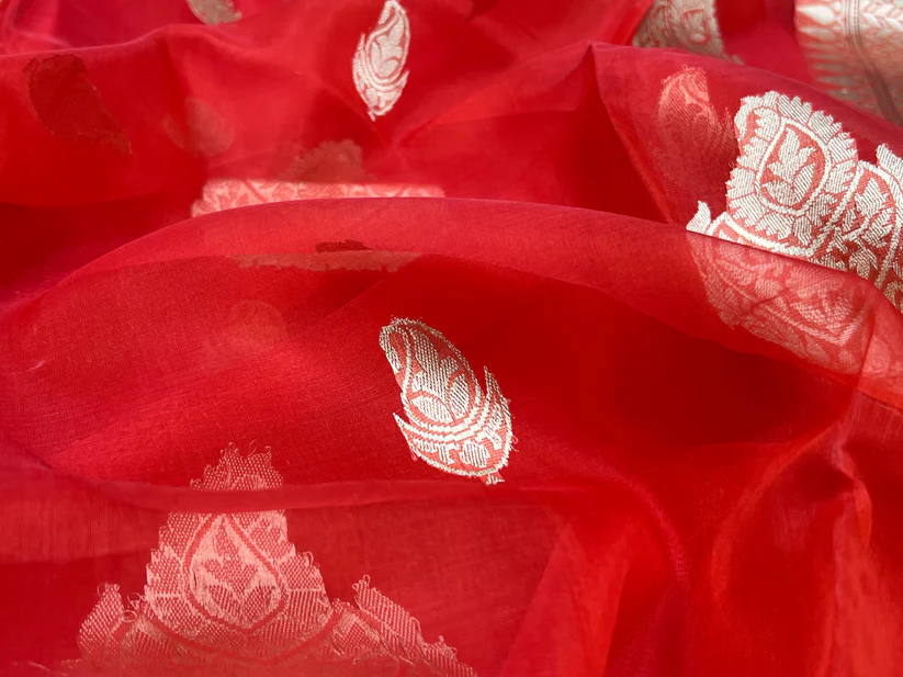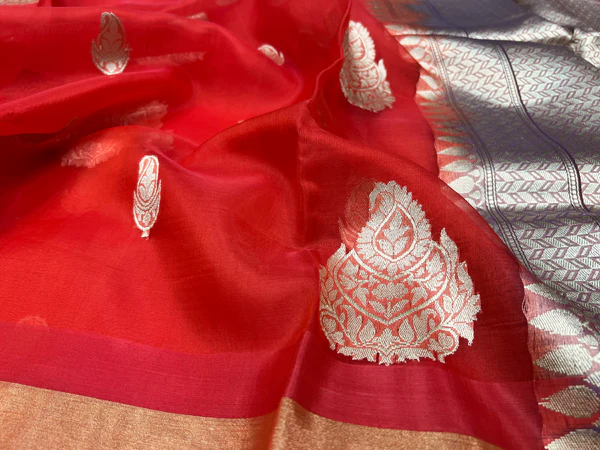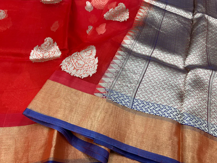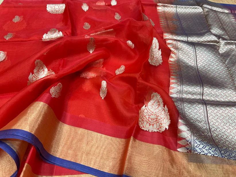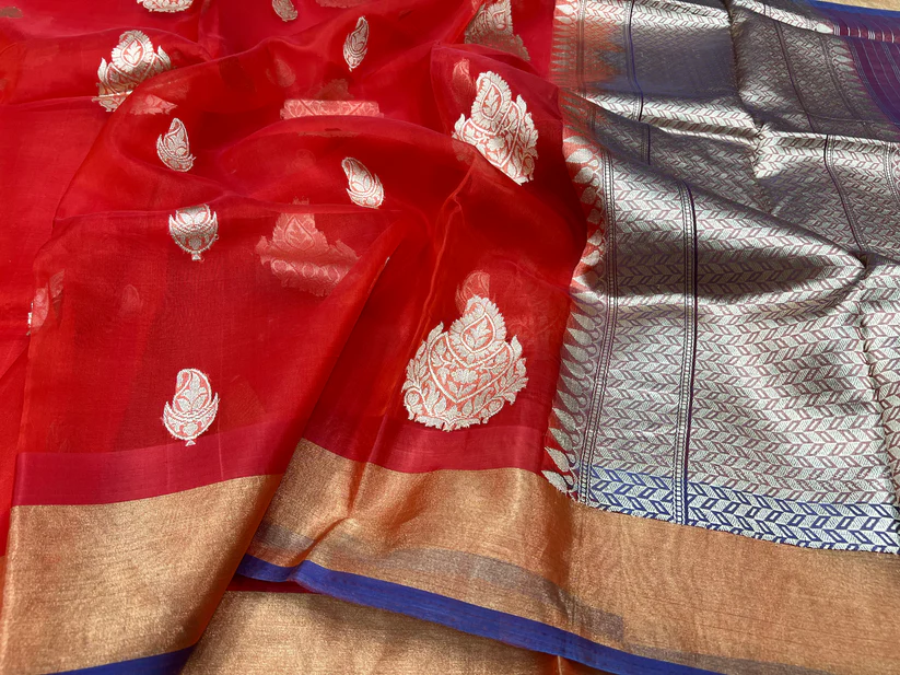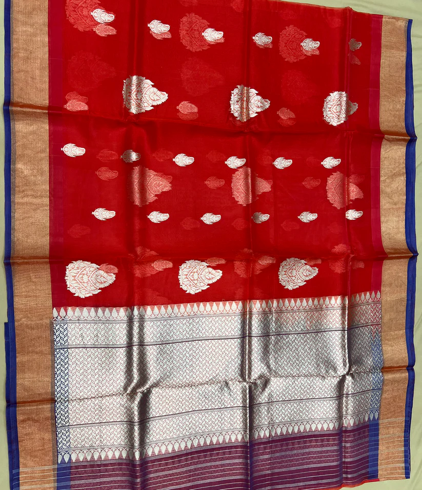 PURE BANARASI HANDWOVEN ORGANZA SILK SAREE – KADHUA MOTIF