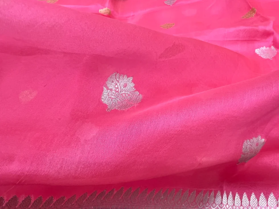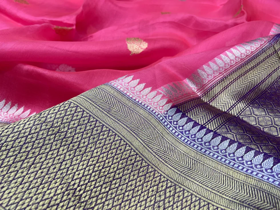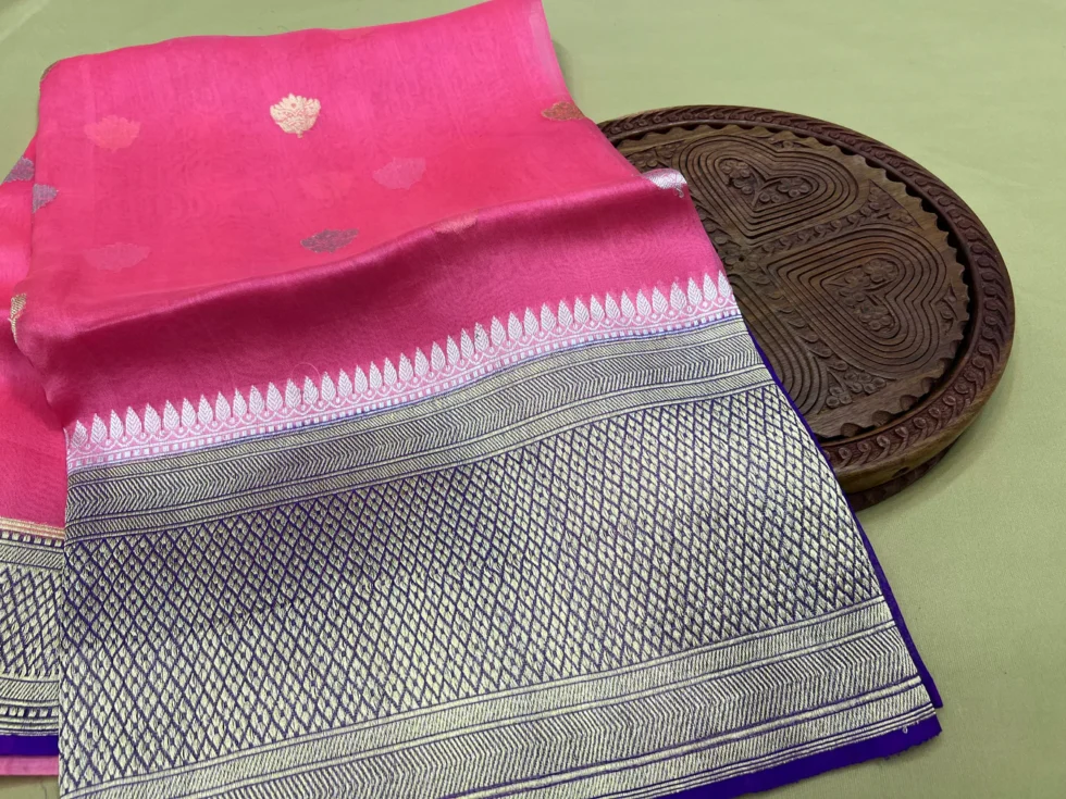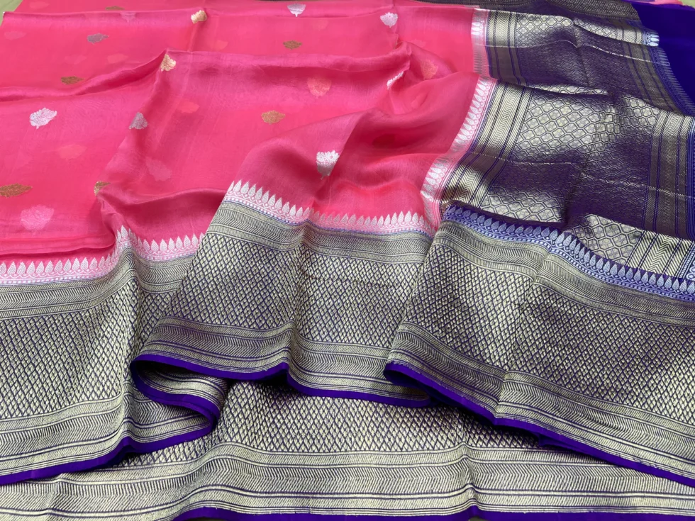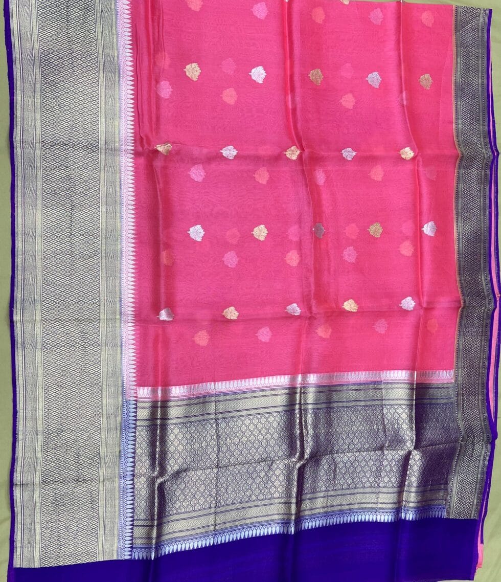 PURE BANARASI HANDWOVEN ORGANZA SILK SAREE – KADHUA MOTIF WEAVE