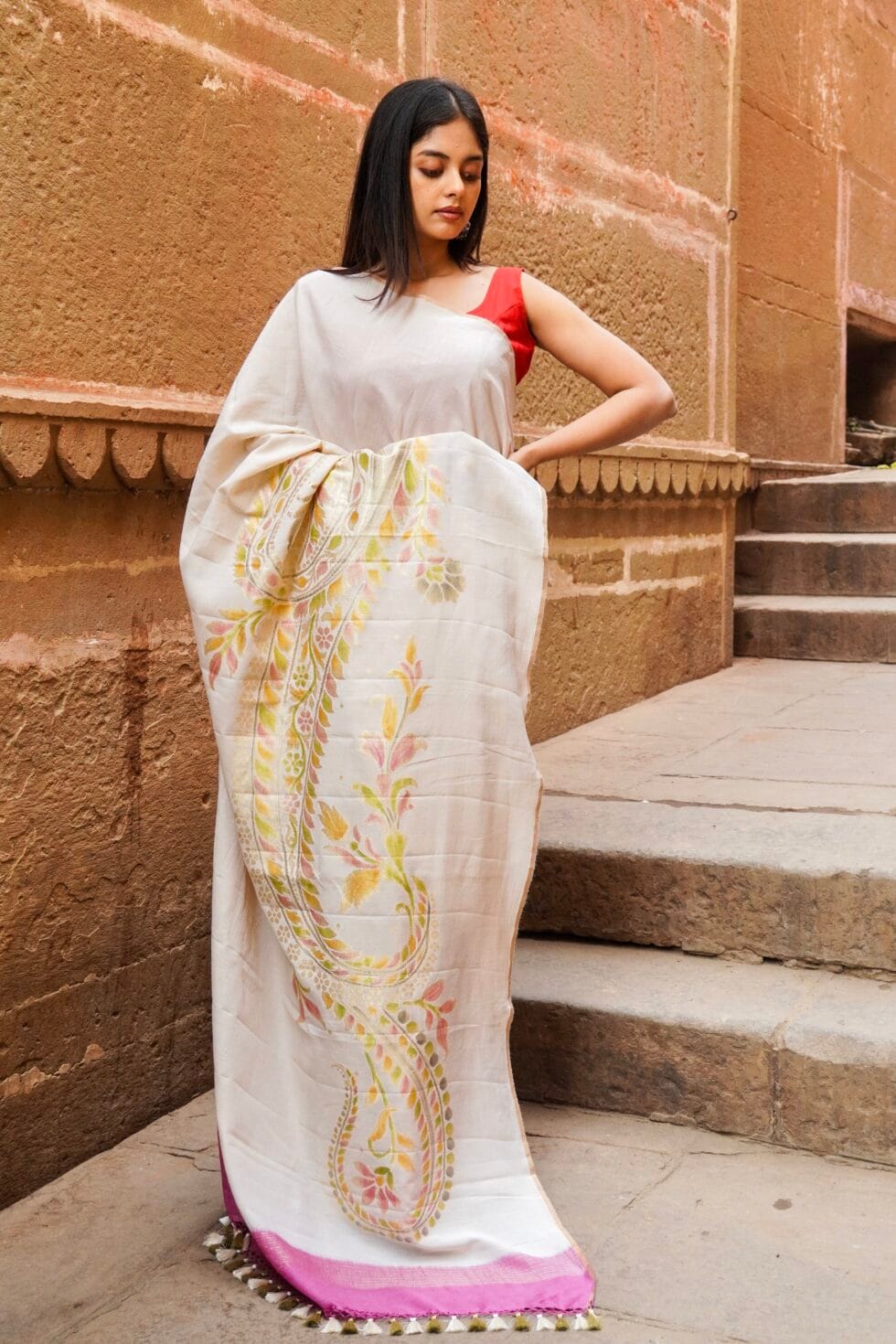 - product – pure Banarasi Moonga silk saree