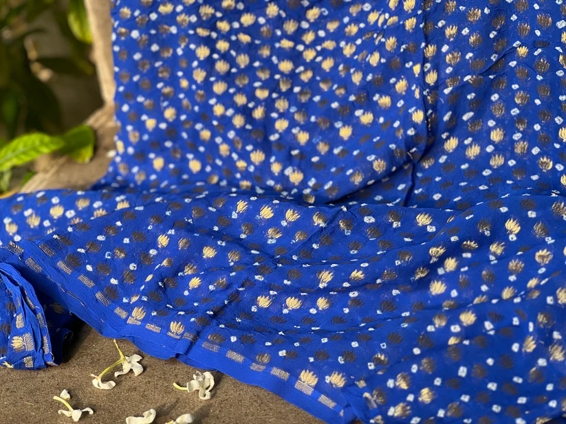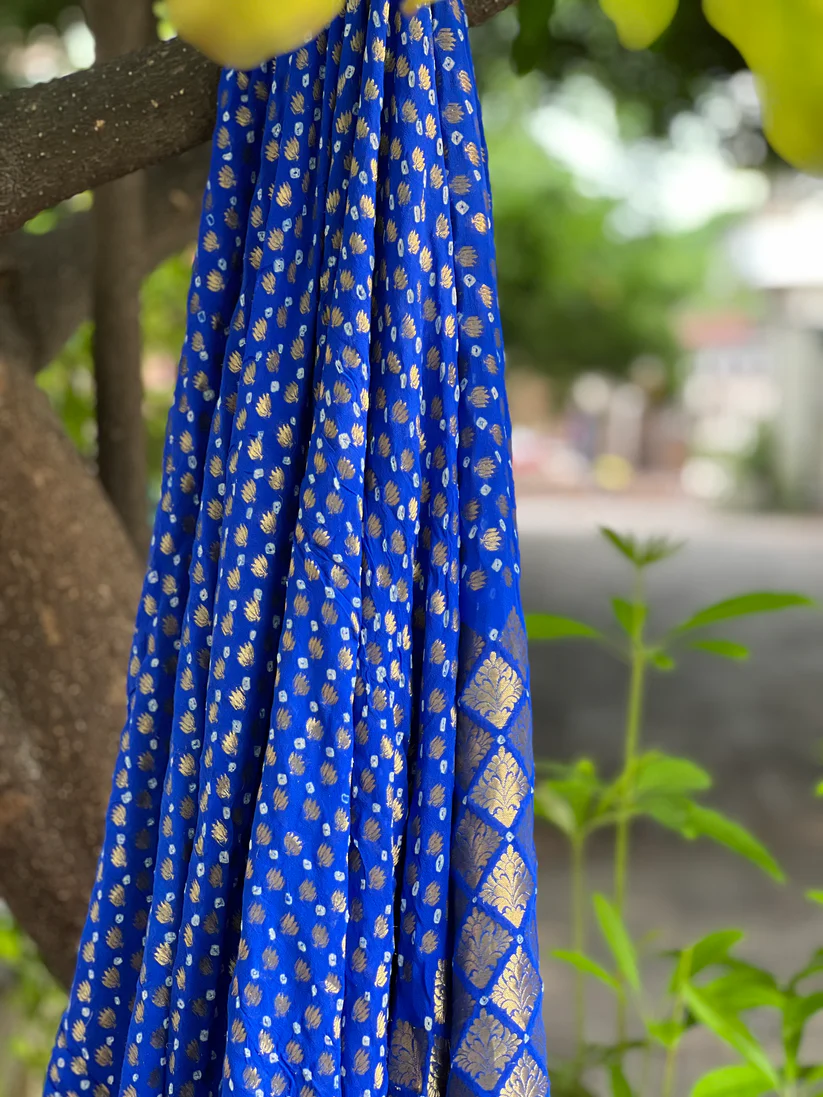 - Product – Pure Banarasi khaddi chiffon Bandhani saree