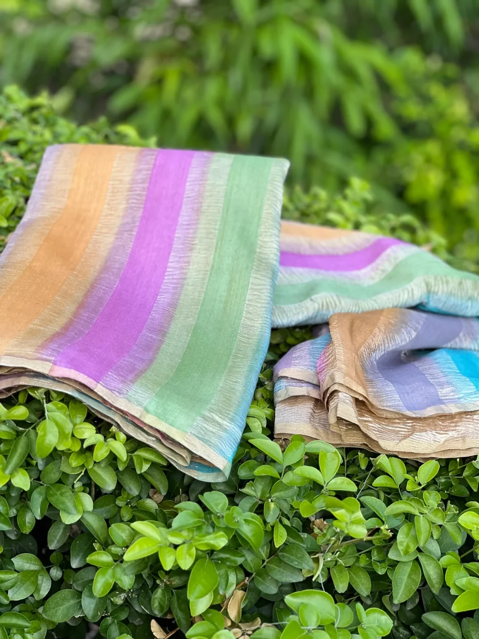 - Fabric – Light to carry and flattering to drape, pure Moonga Silk.
