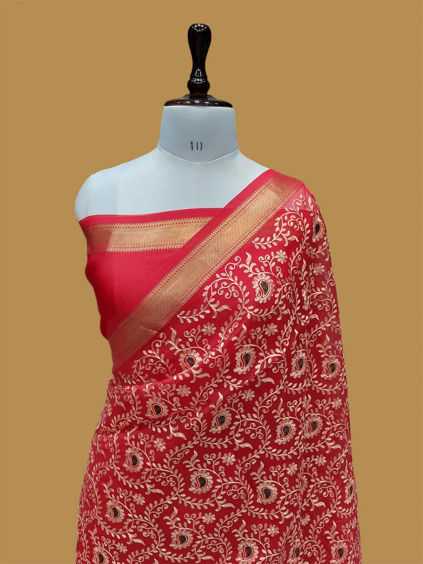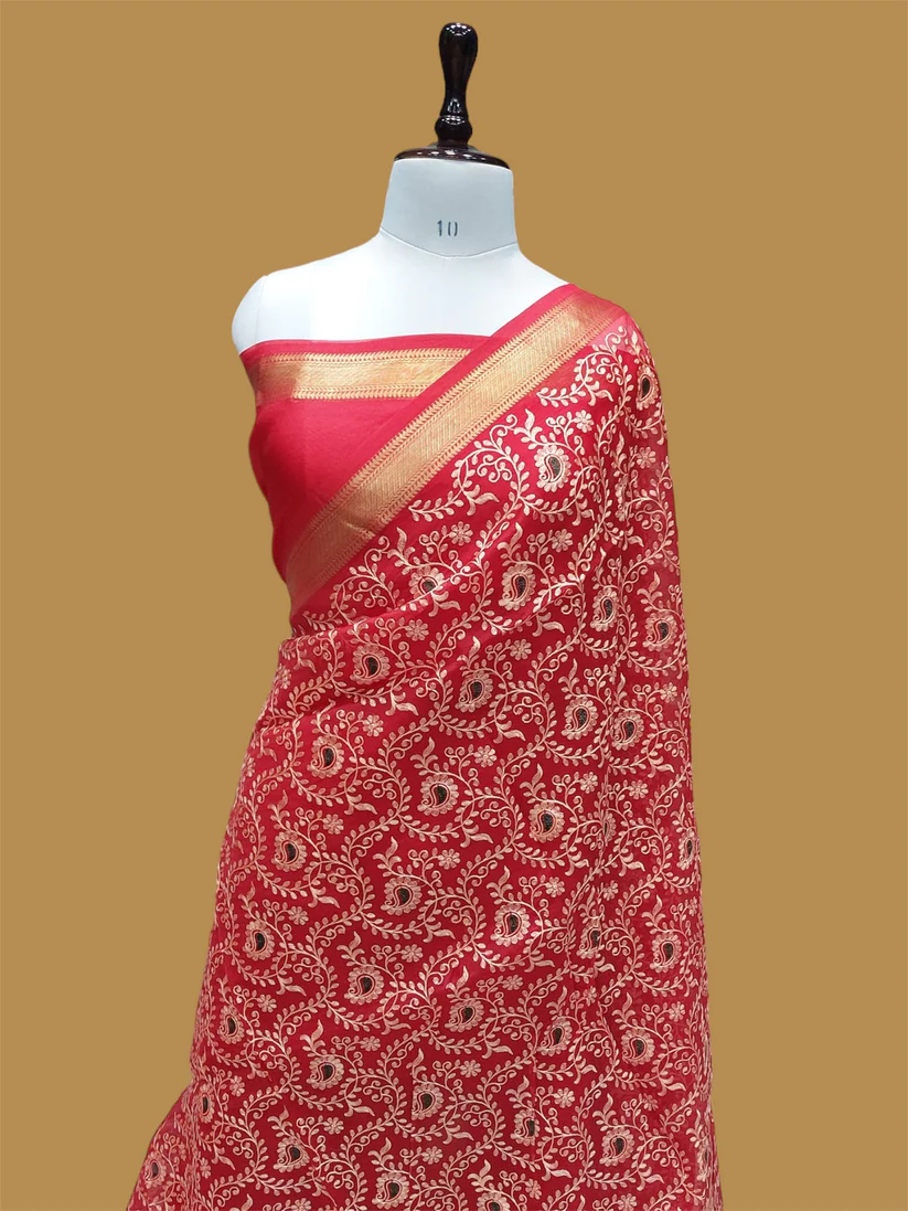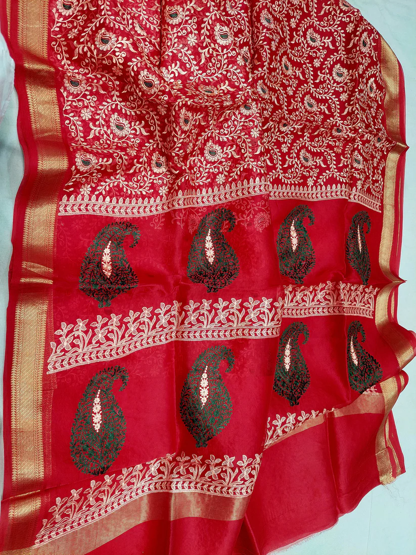 PURE BANARASI KORA KASHMIRI CHIKANKARI SAREE