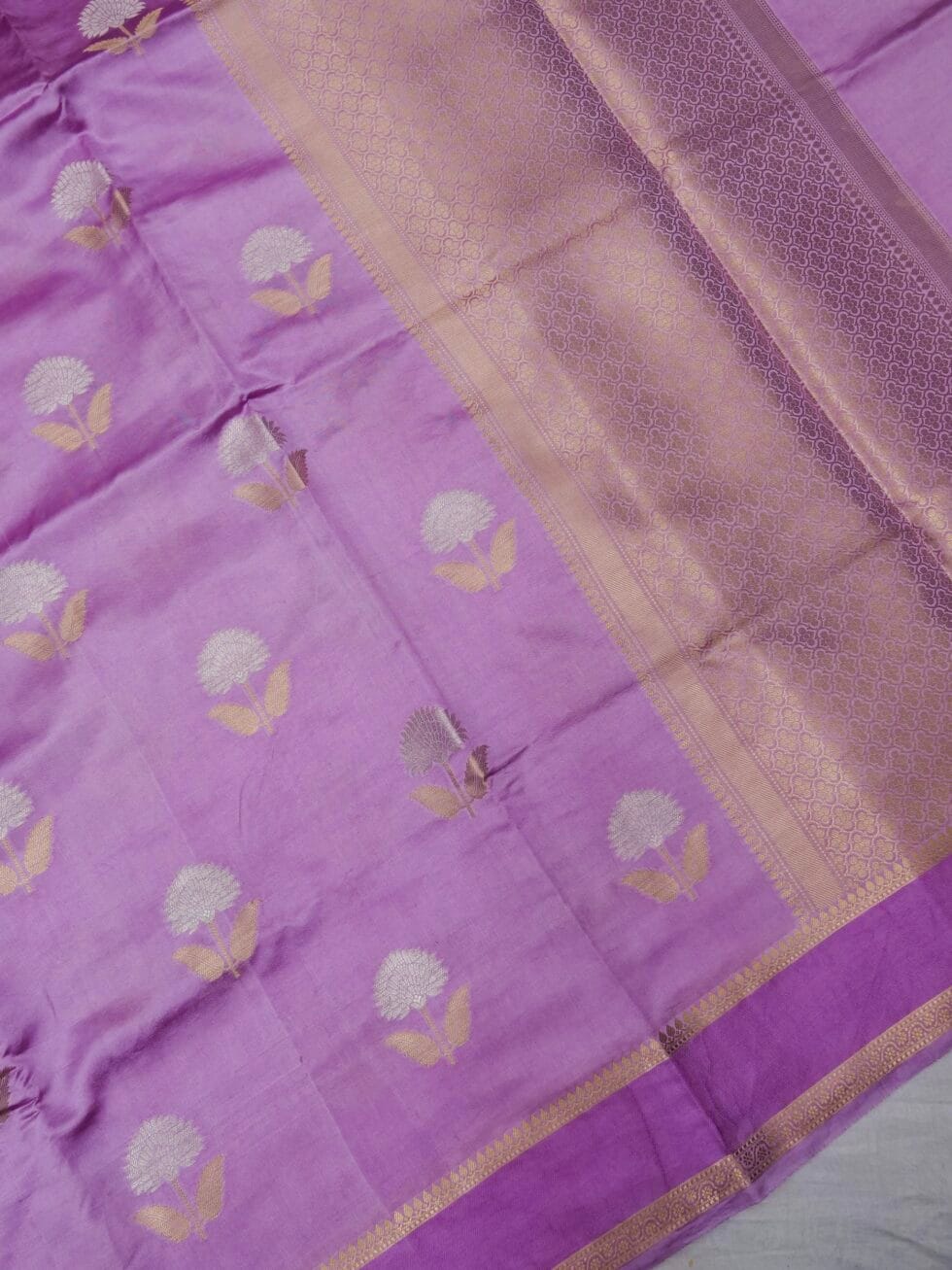 Pure mango silk with silk Patta border and Alfi Butta in body.