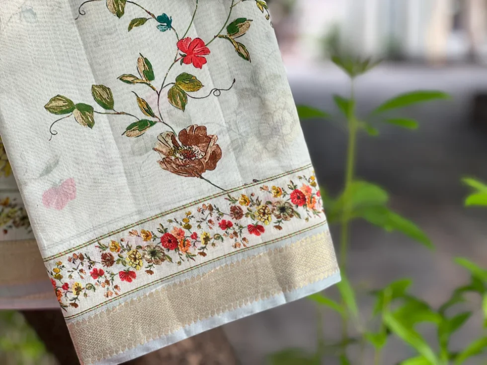 PURE BANARASI MOONGA COTTON SILK KALAMKARI SAREE