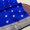 - Speciality – Elegant almond gold zari woven in the exquisite weave, on a dainty palette. Enduring art from Banaras!
