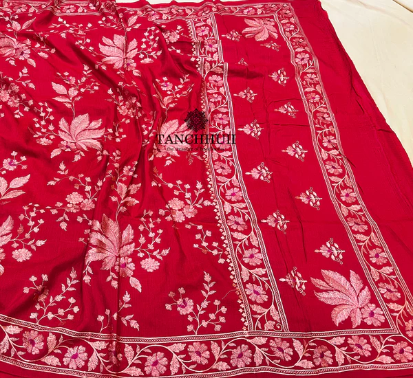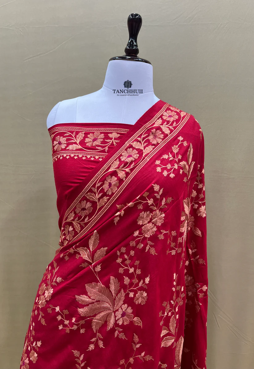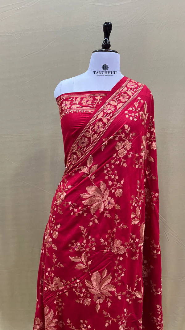 PURE BANARASI MOONGA SILK CHIKANKARI SAREE