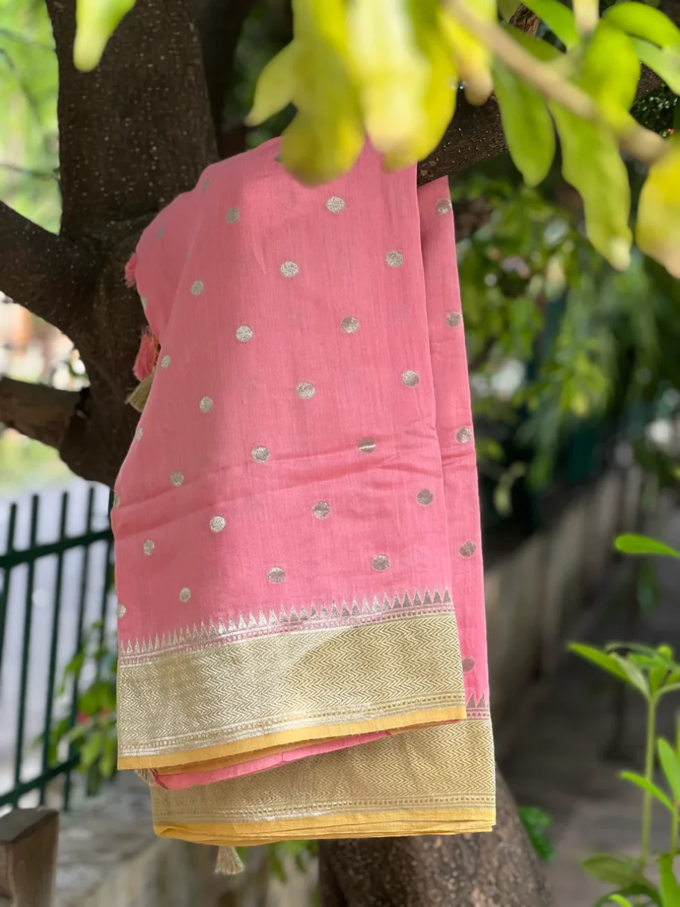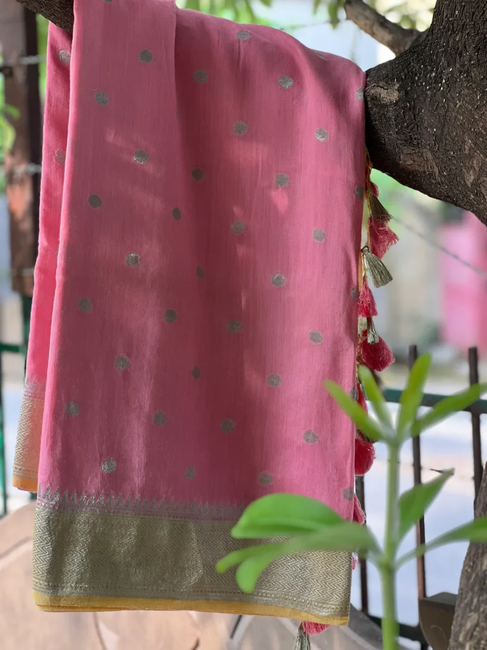 PURE BANARASI MOONGA SILK DOTT SAREE